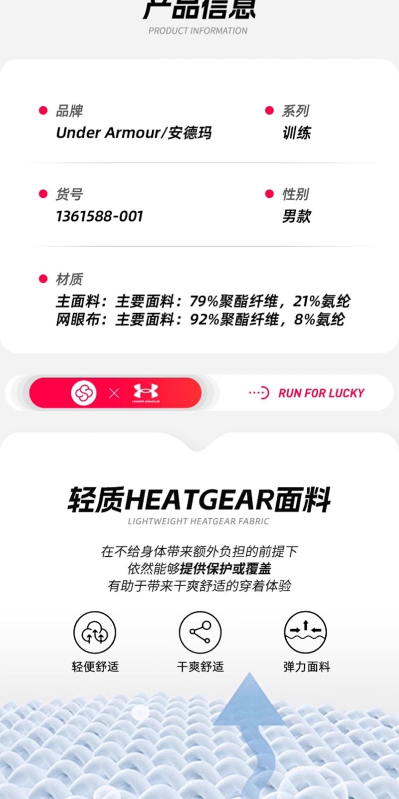 搭载 UA HeatGear 核心科技