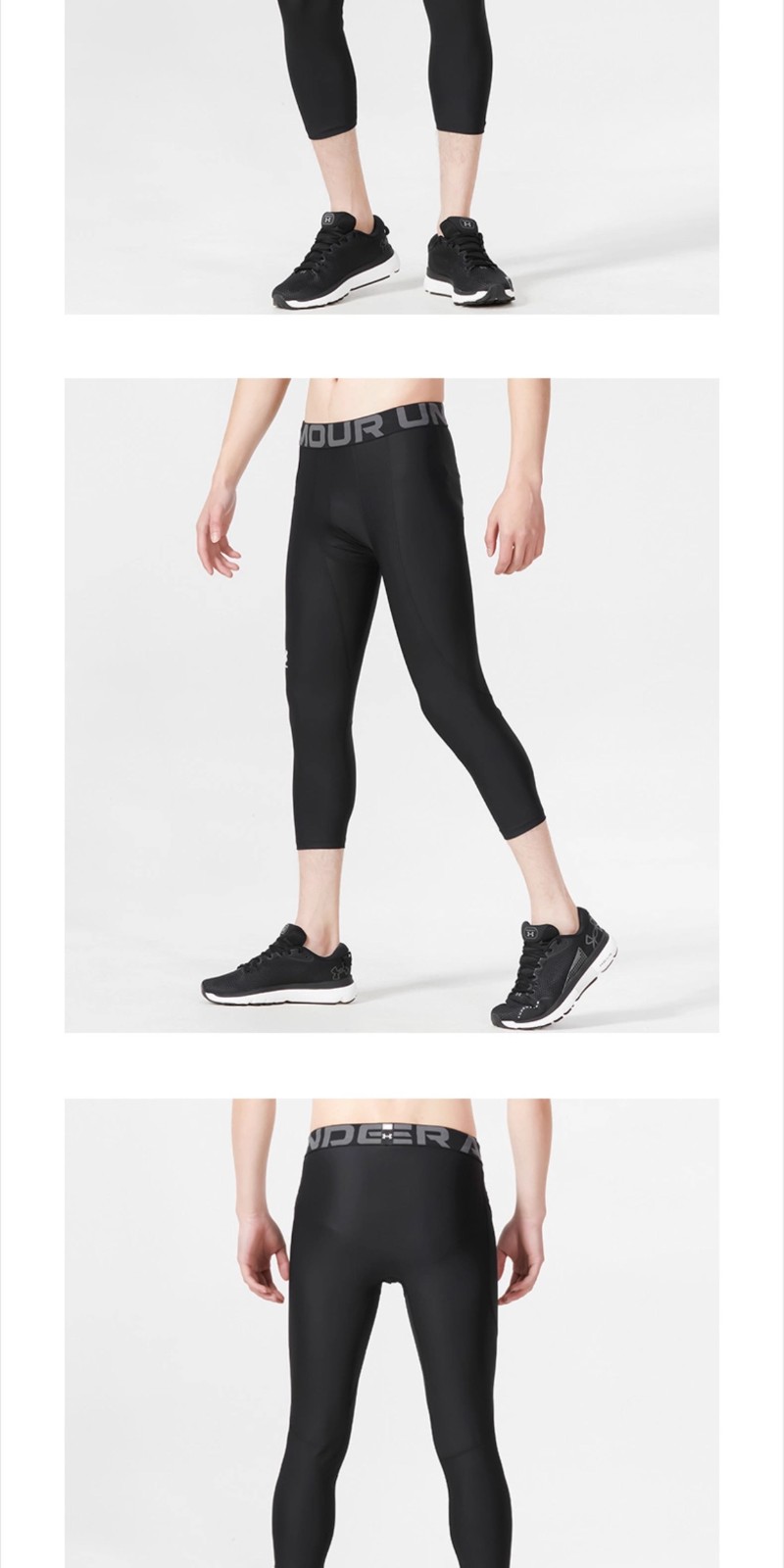 UA/安德玛 男 紧身中裤 2025年秋季裤子健身训练跑步运动裤 透气七分紧身裤 1361588-001 黑色