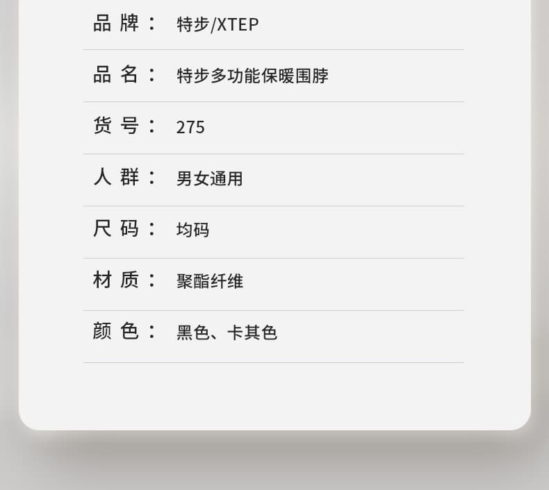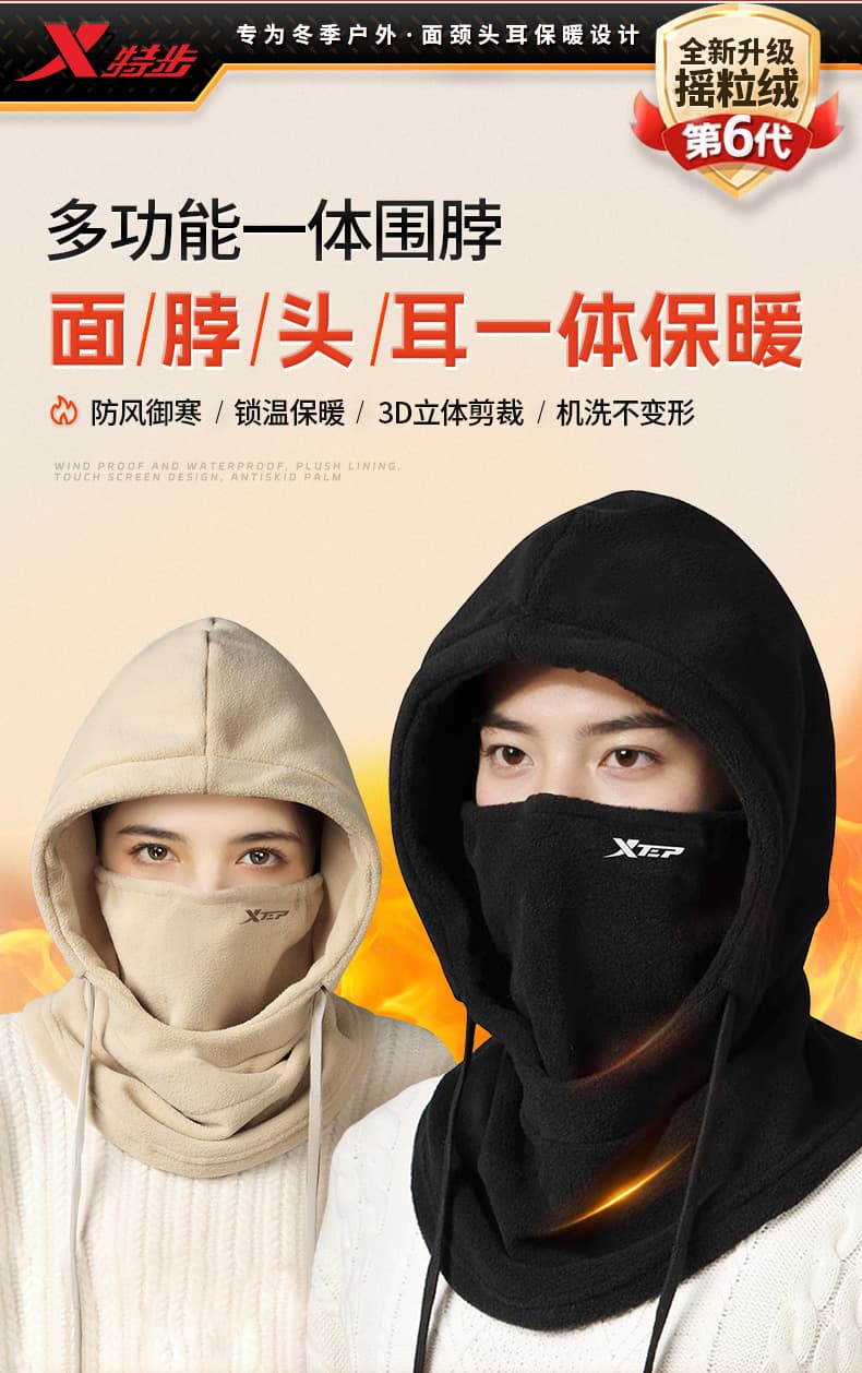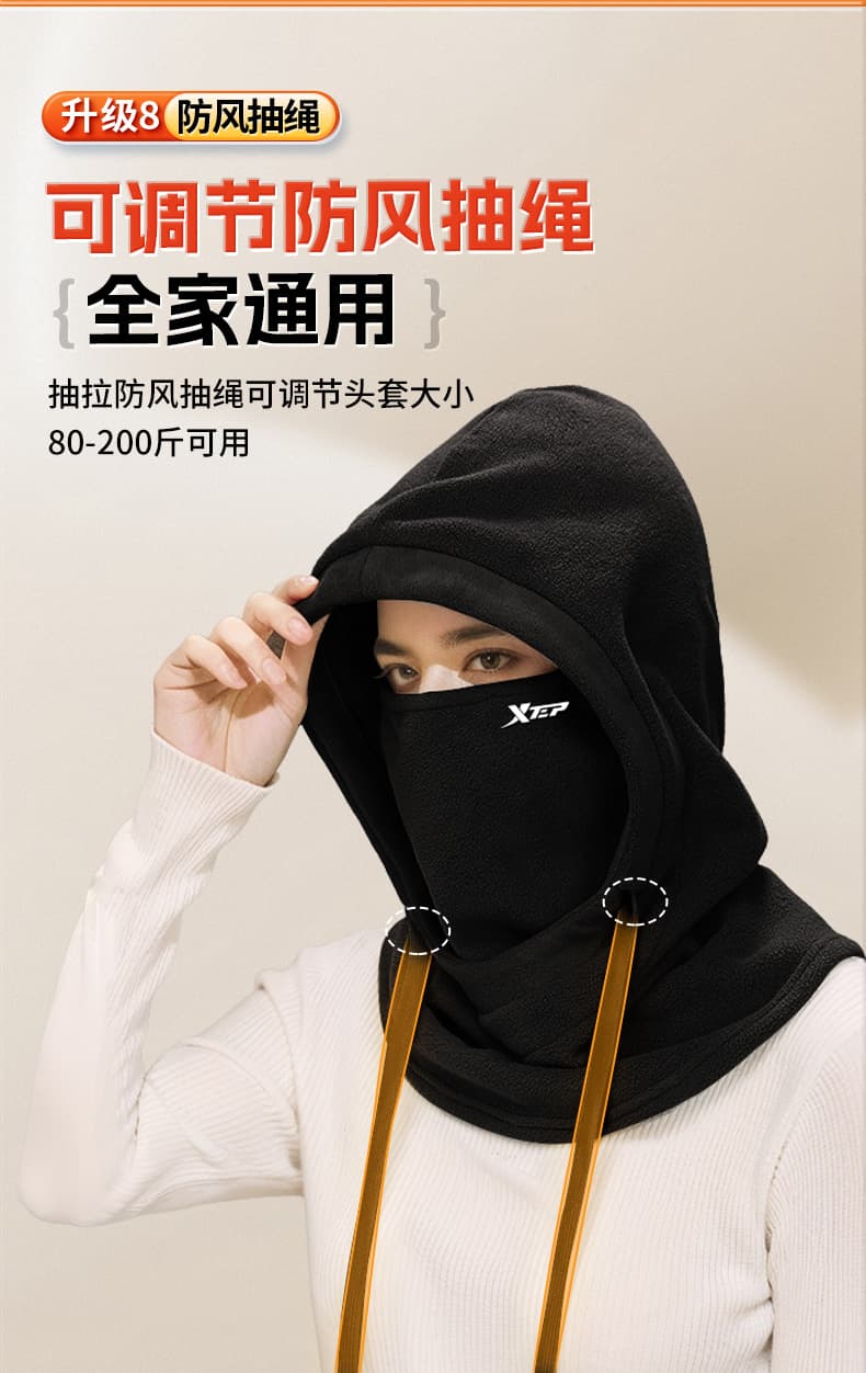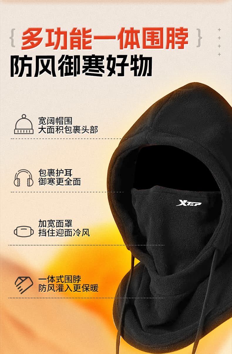 XTEP特步 户外多功能面罩 骑行帽子防风面罩 围脖一体防寒护耳护颈保暖头套 ABA275