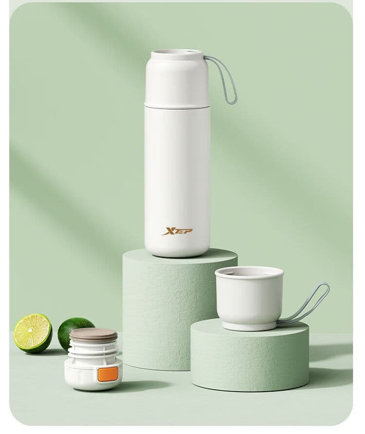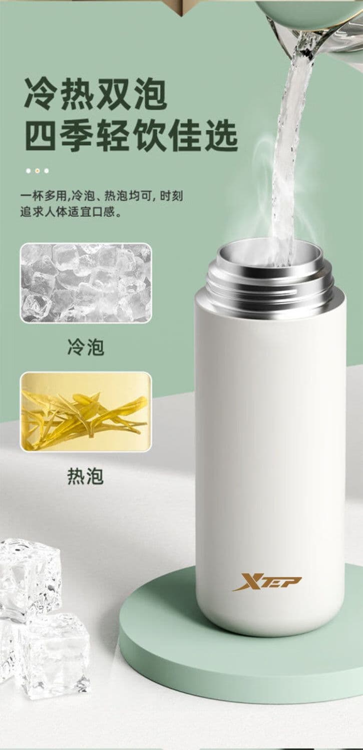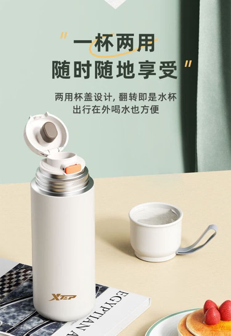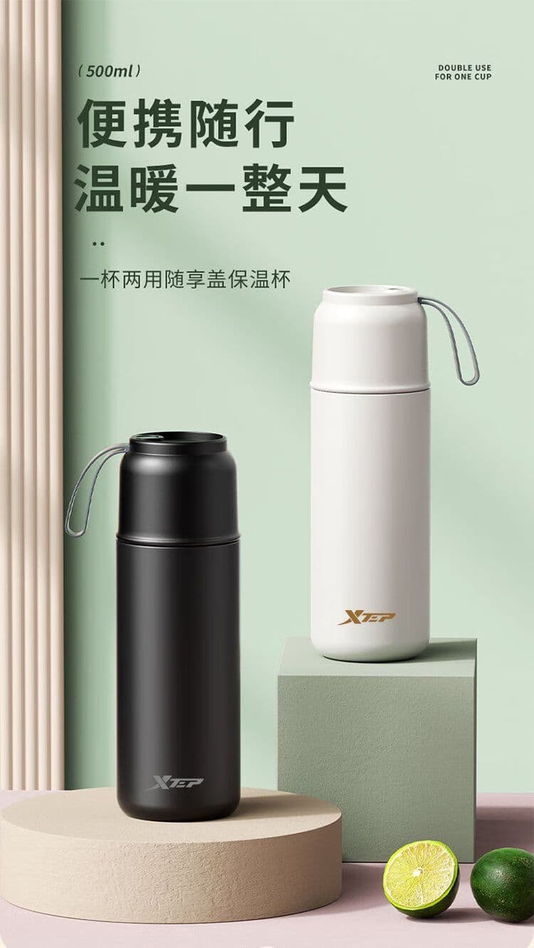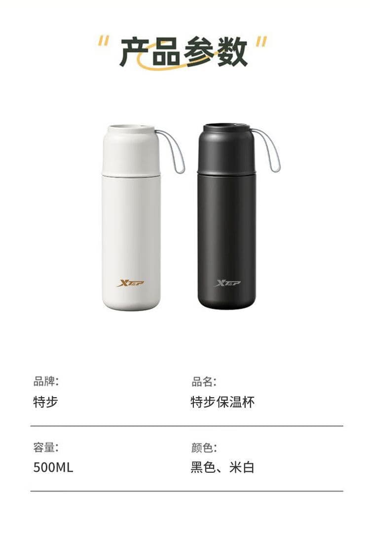 XTEP特步 运动水杯 大容量保温杯 办公室户外便携手提不锈钢水壶 500ML ABA369 双色可选