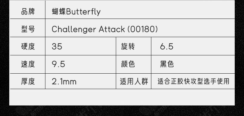 蝴蝶 00180 Challenger Attack 挑战者攻击正胶套胶