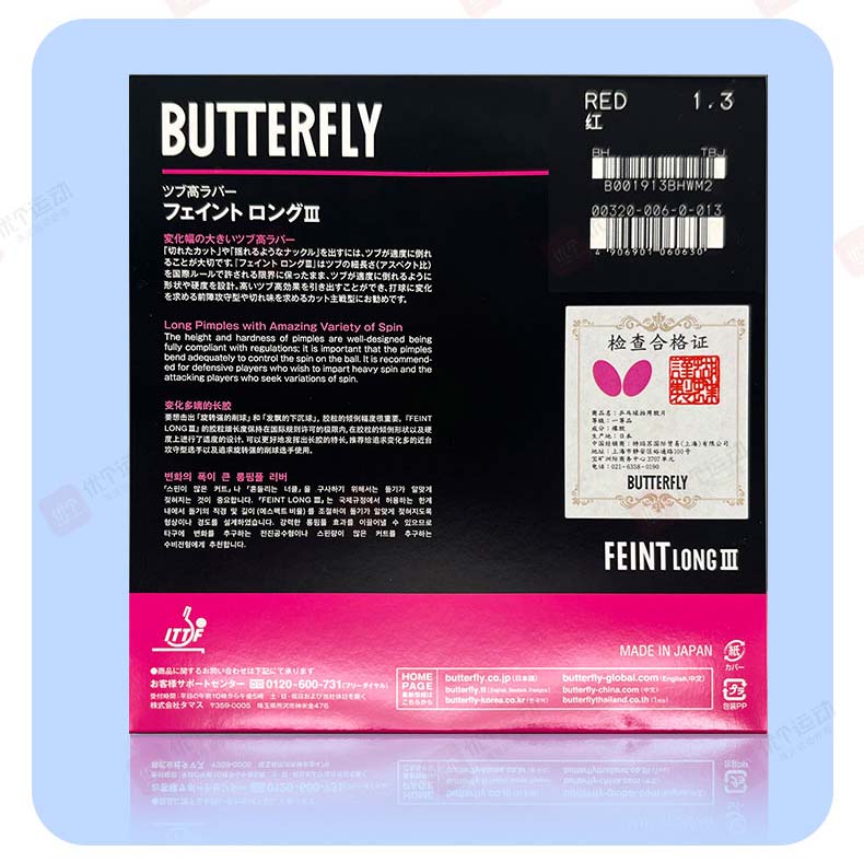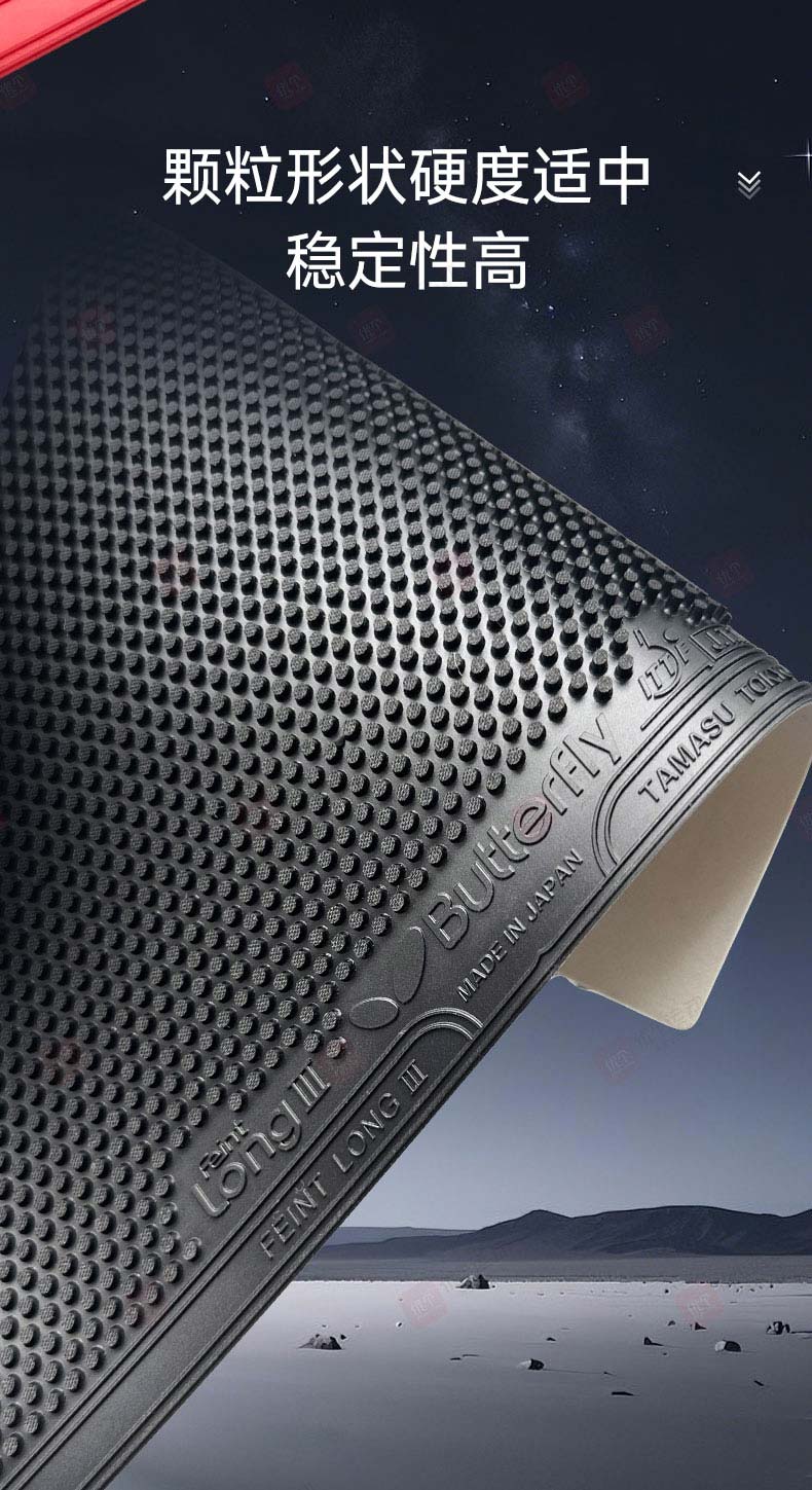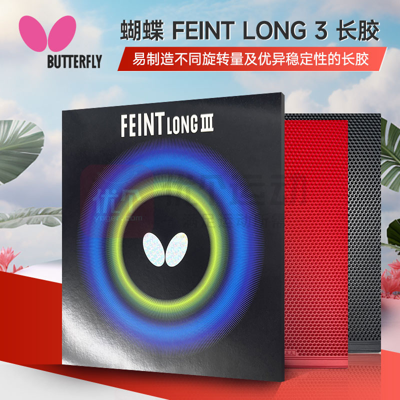 BUTTERFLY蝴蝶 乒乓球胶皮 FEINT LONG III套胶超薄 削球稳健 菲尼特长胶三代超薄 00340
