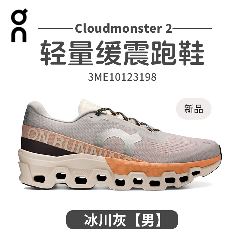 On昂跑 男 Cloudmonster 2跑鞋 新一代怪兽鞋潮流跑鞋 轻量缓震跑鞋 长距离运动鞋 3ME10123198 冰川灰