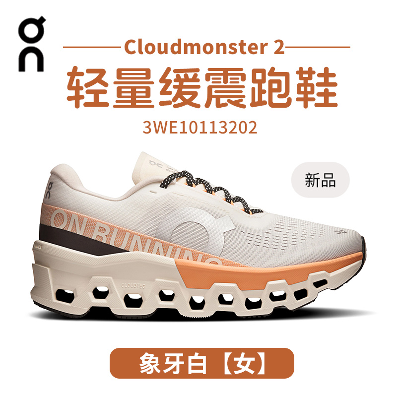 On昂跑 女 Cloudmonster 2跑鞋 新一代怪兽鞋潮流跑鞋 轻量缓震跑鞋 长距离运动鞋 3WE10113202 象牙白