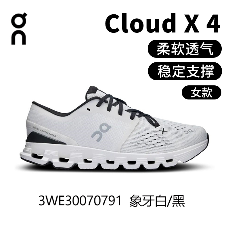 On昂跑 女 Cloud X 4跑鞋 新一代综合运动训练跑步鞋 3WE30070791 象牙白/黑