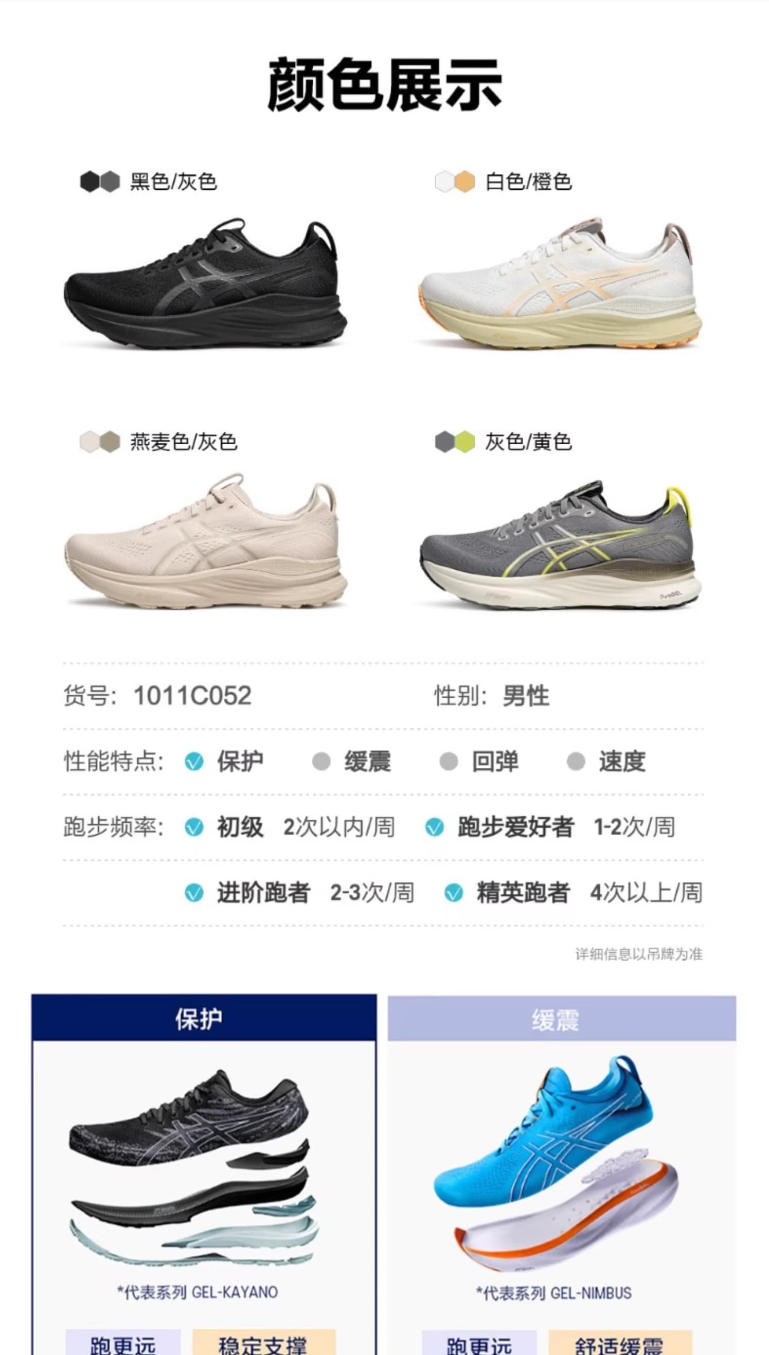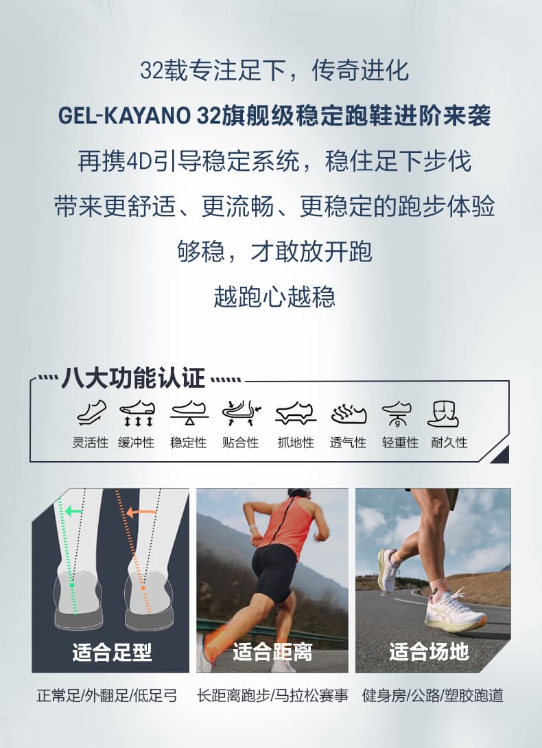 ASICS亚瑟士 男 K32跑步鞋 GEL-KAYANO 32稳定支撑专业运动鞋 1011C052-001 黑色/灰色