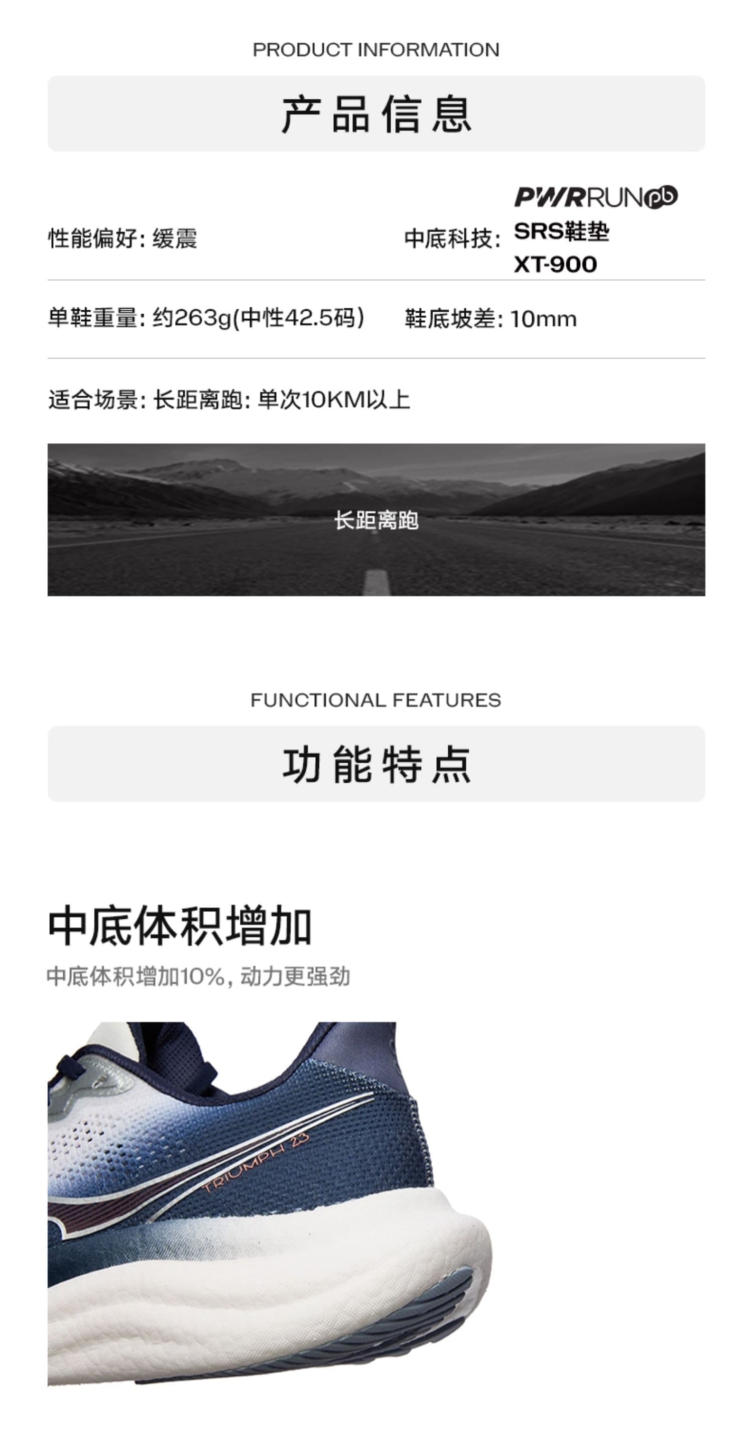 Saucony索康尼 彭于晏同款 胜利23跑步鞋 TRIUMPH 23专业男女缓震慢跑运动鞋 S31023-552 咖啡兰