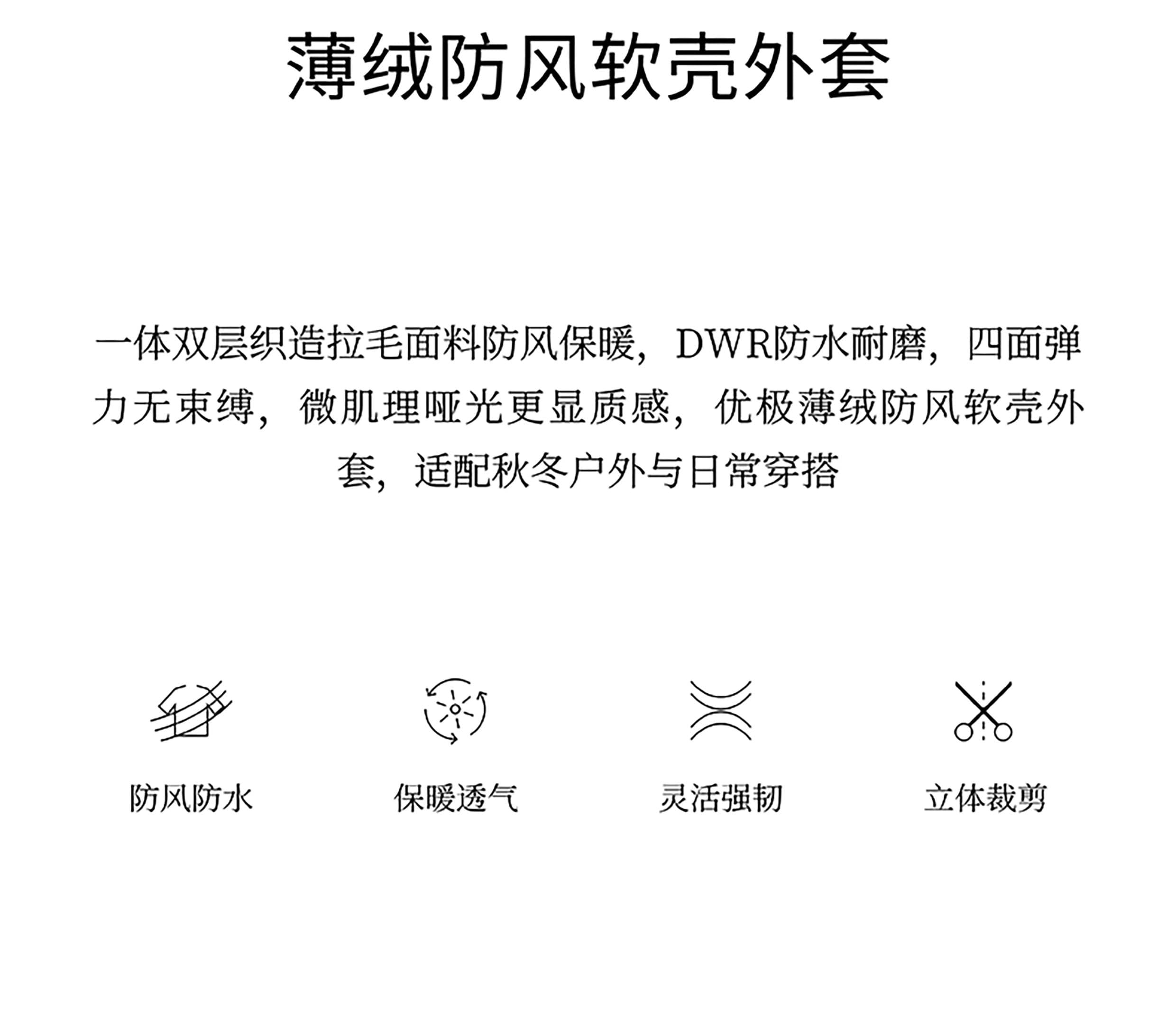 外层防风软壳面料搭配隐形防泼水处理