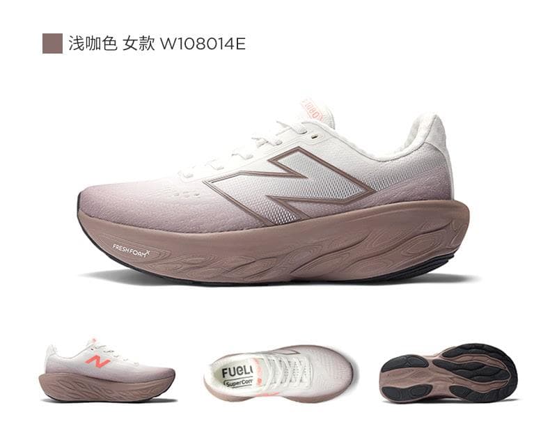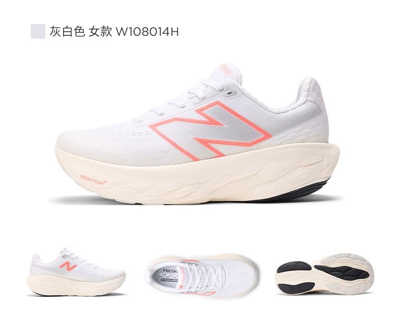 New Balance新百伦 女 1080 v14跑步鞋 专业缓震舒适透气跑步鞋 W108014H-B 白色/粉色