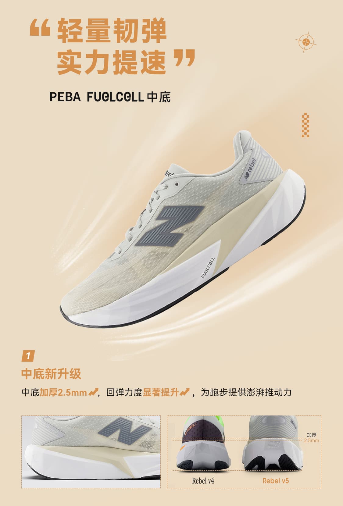 New Balance FuelCell Rebel V5 以 “轻量全能” 为核心