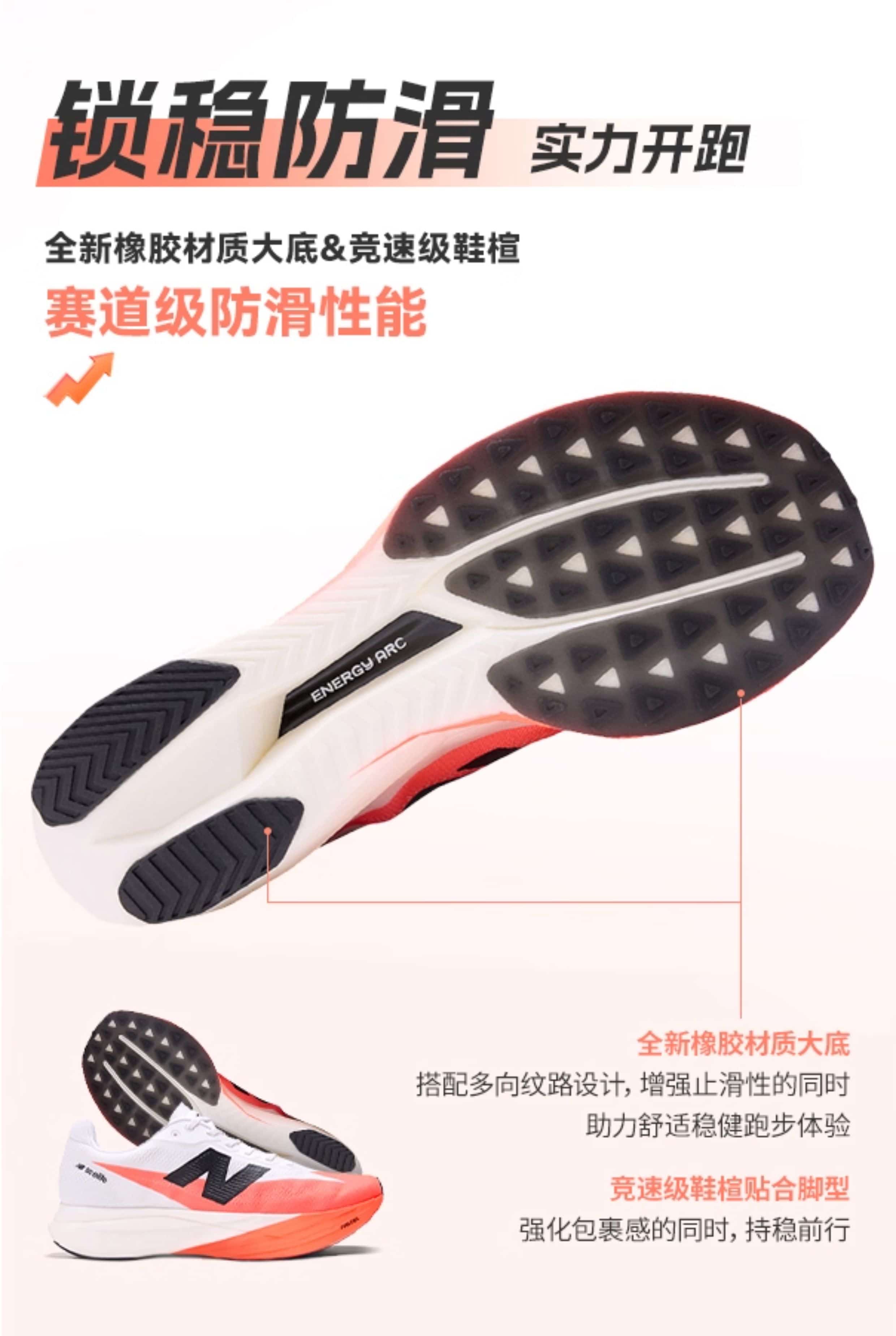 搭配工程网面 + FantomFit 轻量化支撑鞋面与 CPU 橡胶防滑外底