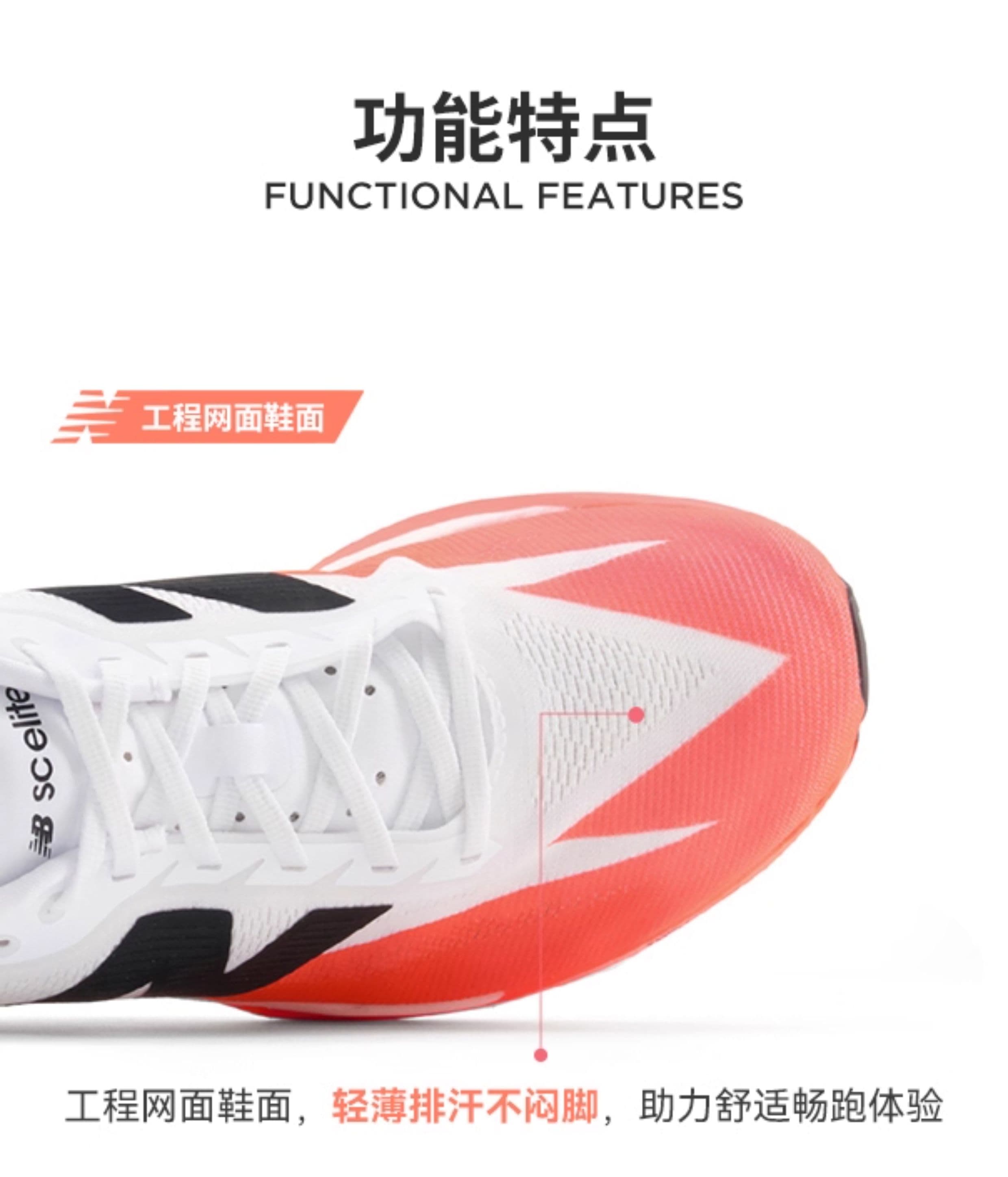 实现轻量(184-214 克)、高弹、透气与稳健抓地的多重优势