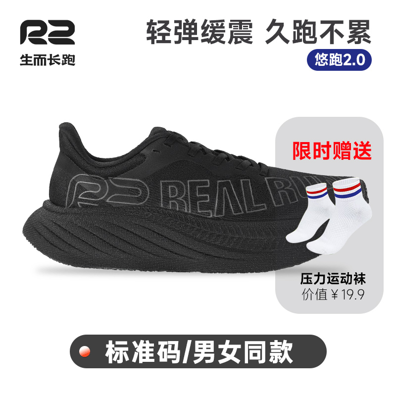 R2 悠跑2.0跑鞋 男女款马拉松跑鞋 秋季轻便缓震回弹透气跑步鞋 运动休闲鞋 旭日黄