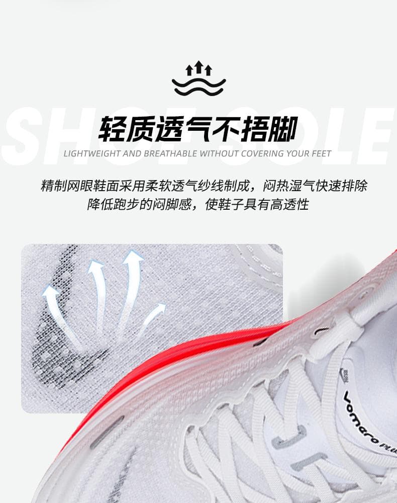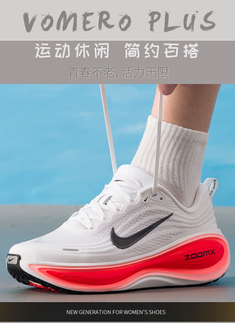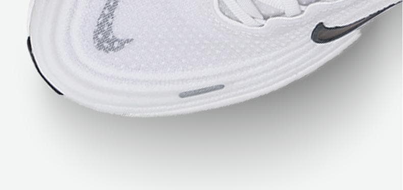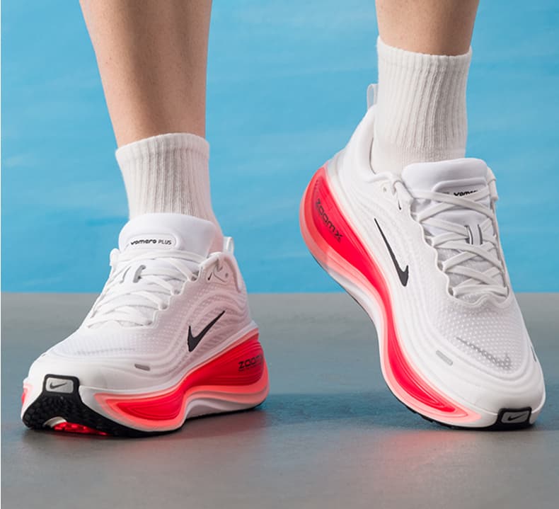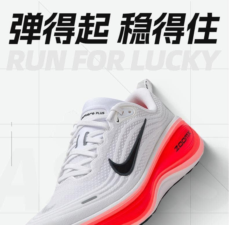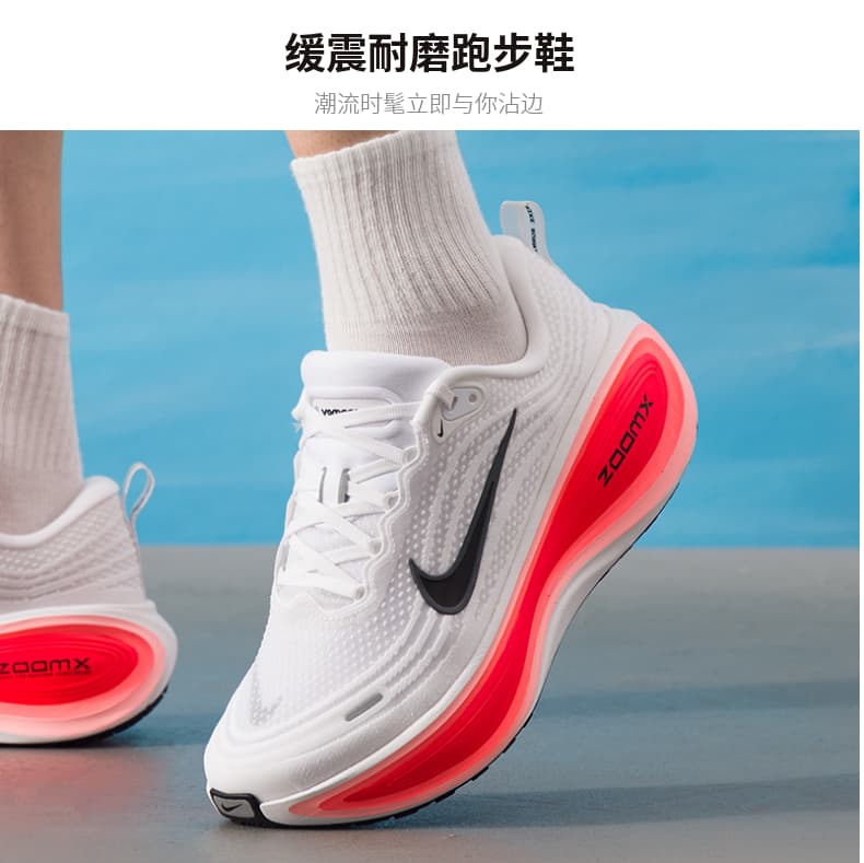 1.全掌ZoomX泡绵中底:采用耐克顶级缓震材料,提供高回弹和低冲击体验,后跟堆叠高度达45mm,有效减少关节压力,适合大体重跑者。