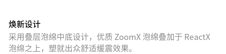 ZoomX 泡绵叠加于 ReactX 泡绵之上
