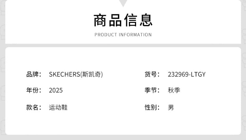 SKECHERS斯凯奇 男 跑步鞋 缓震跑步鞋 透气轻便运动鞋 232969-LTGY 浅灰色