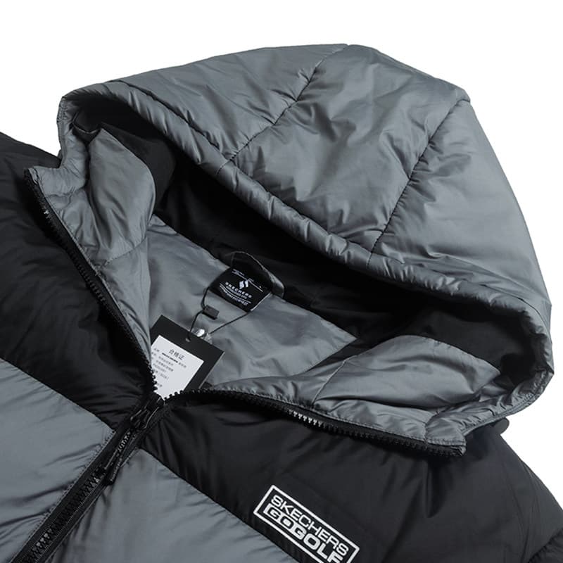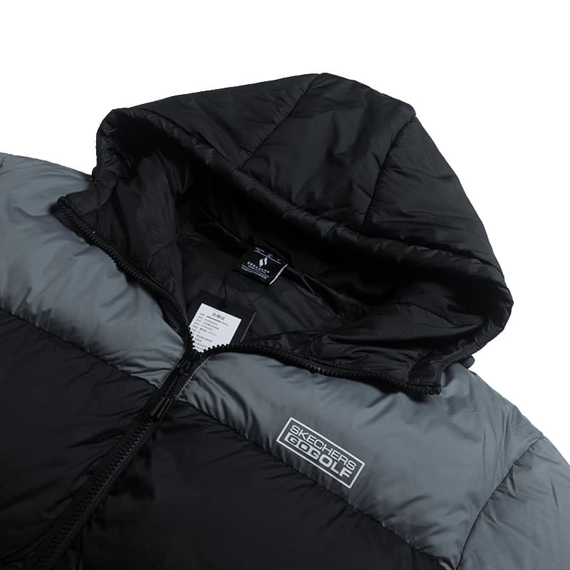 斯凯奇男女款羽绒服,P425U091-01TS 鱼子酱黑,新款连帽保暖上衣。