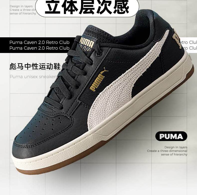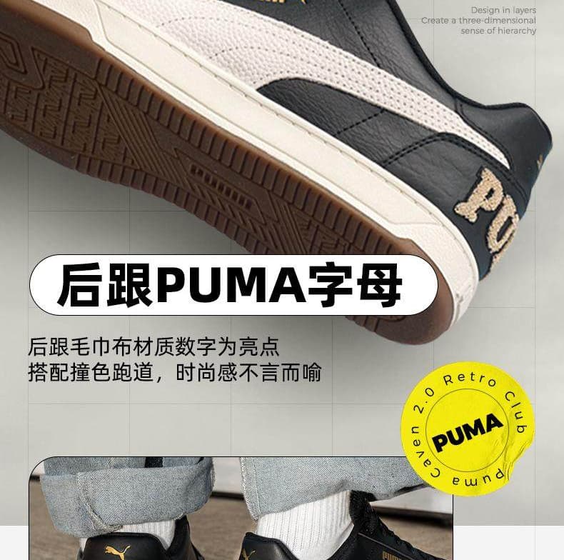 PUMA彪马 低帮板鞋 2025冬季新款运动鞋 男女同款复古休闲鞋帮 395082-04 黑色-暖白-金色