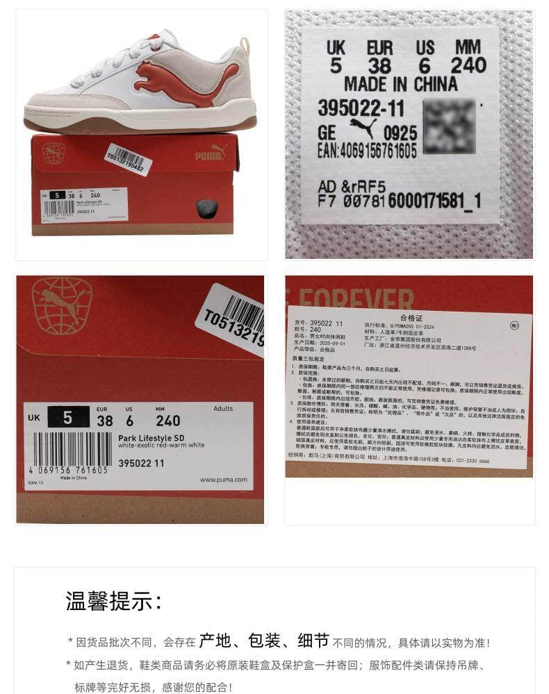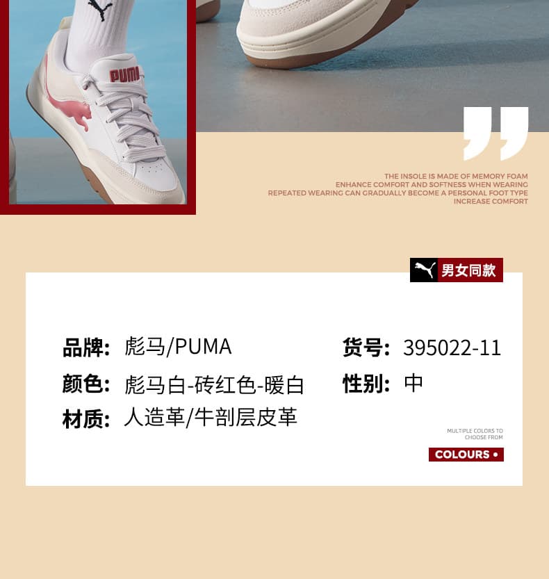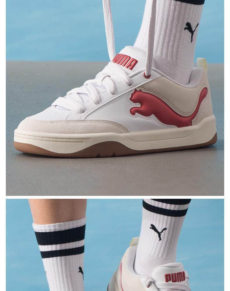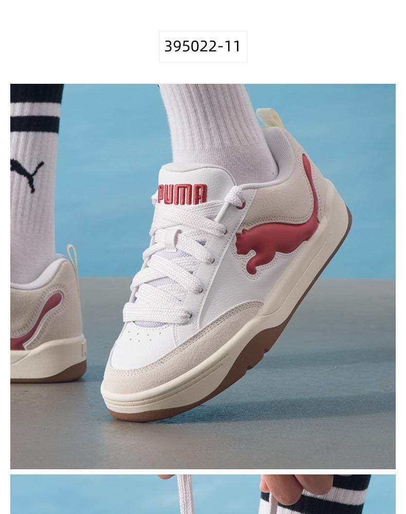 PUMA彪马 低帮板鞋 2025新年款情侣红色面包鞋 厚底板鞋 395022-11 彪马白-砖红色-暖白