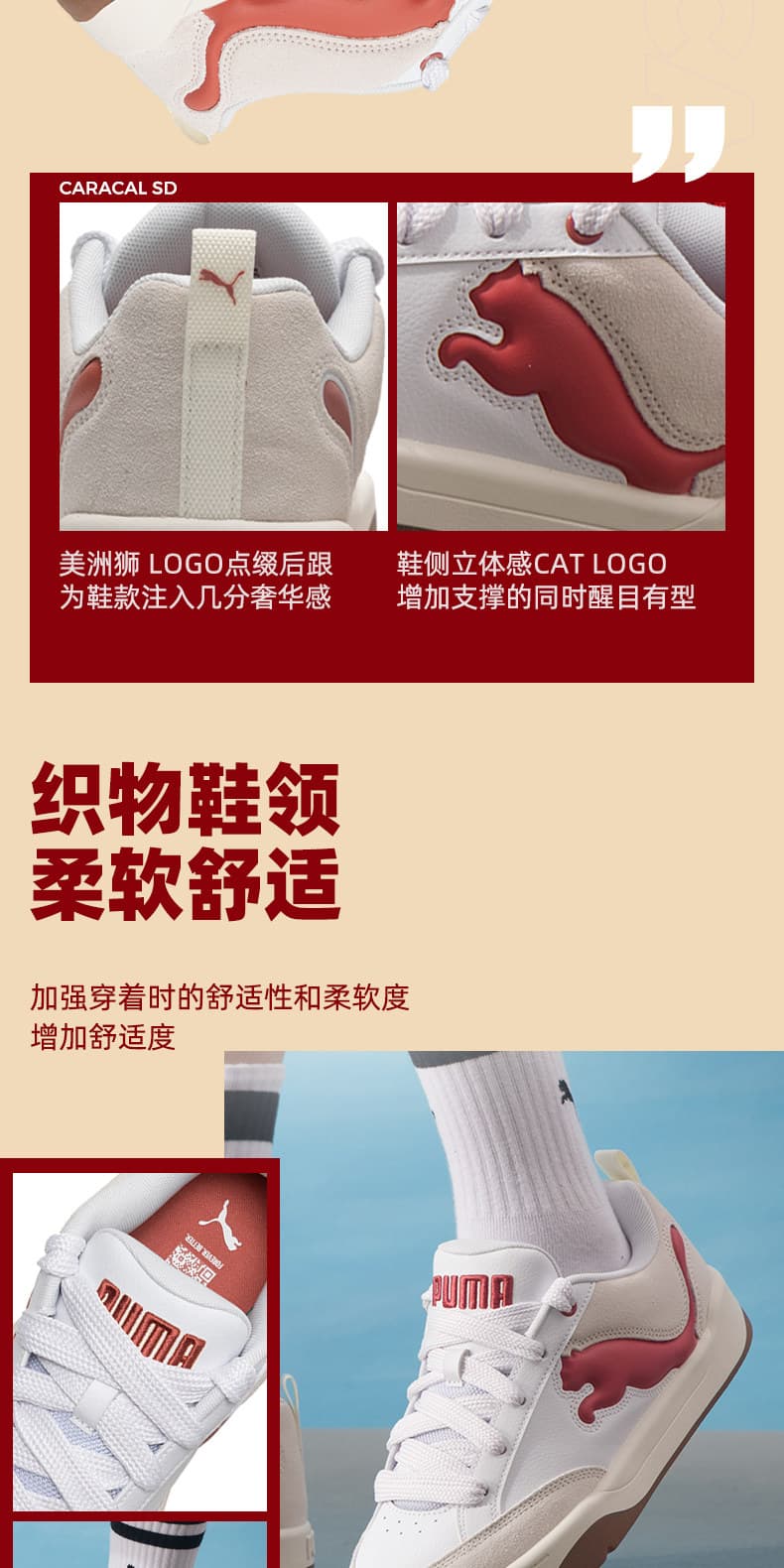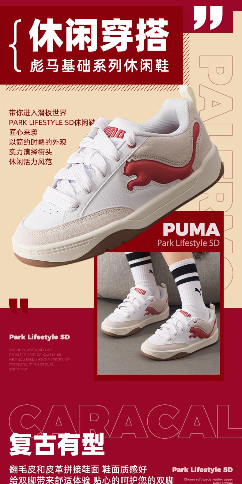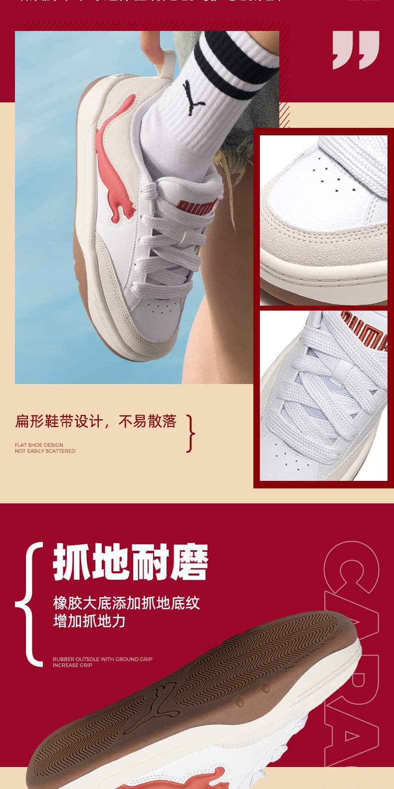 PUMA彪马 低帮板鞋 2025新年款情侣红色面包鞋 厚底板鞋 395022-11 彪马白-砖红色-暖白