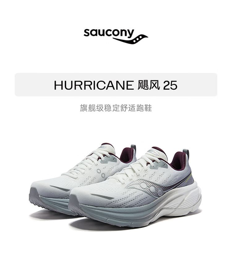 Saucony索康尼 飓风25跑鞋 男女款稳定支撑跑步鞋 大体重缓震跑鞋 S31026-551 浅灰深灰