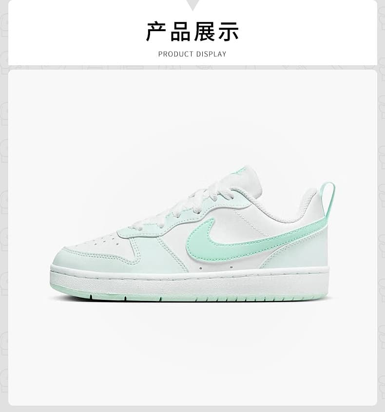 NIKE耐克 儿童板鞋 男女童低帮休闲运动鞋 COURT BOROUGH大童鞋 FZ3539-100 白/薄荷绿