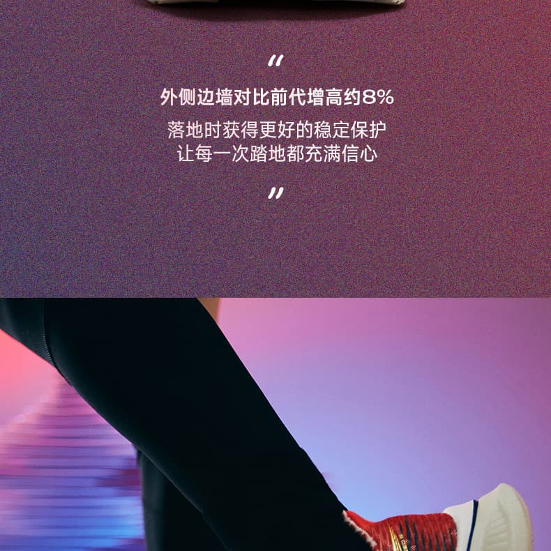 外侧边墙增高8%,配合全掌凹槽设计,显著提升落地支撑性,减少崴脚风险