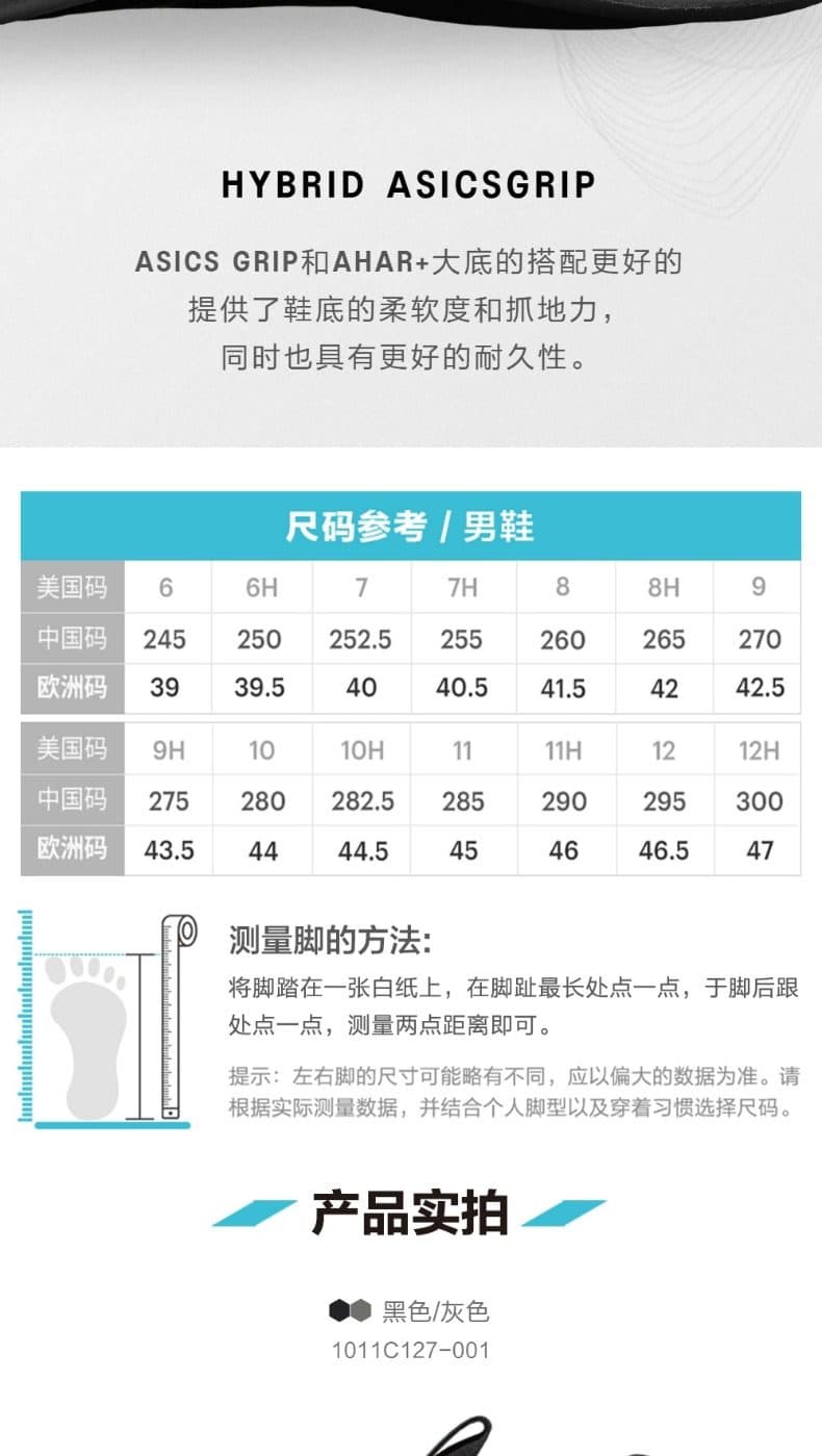 Hybrid ASICSGRIP外底减少橡胶覆盖,抓地力保持但重量减轻
