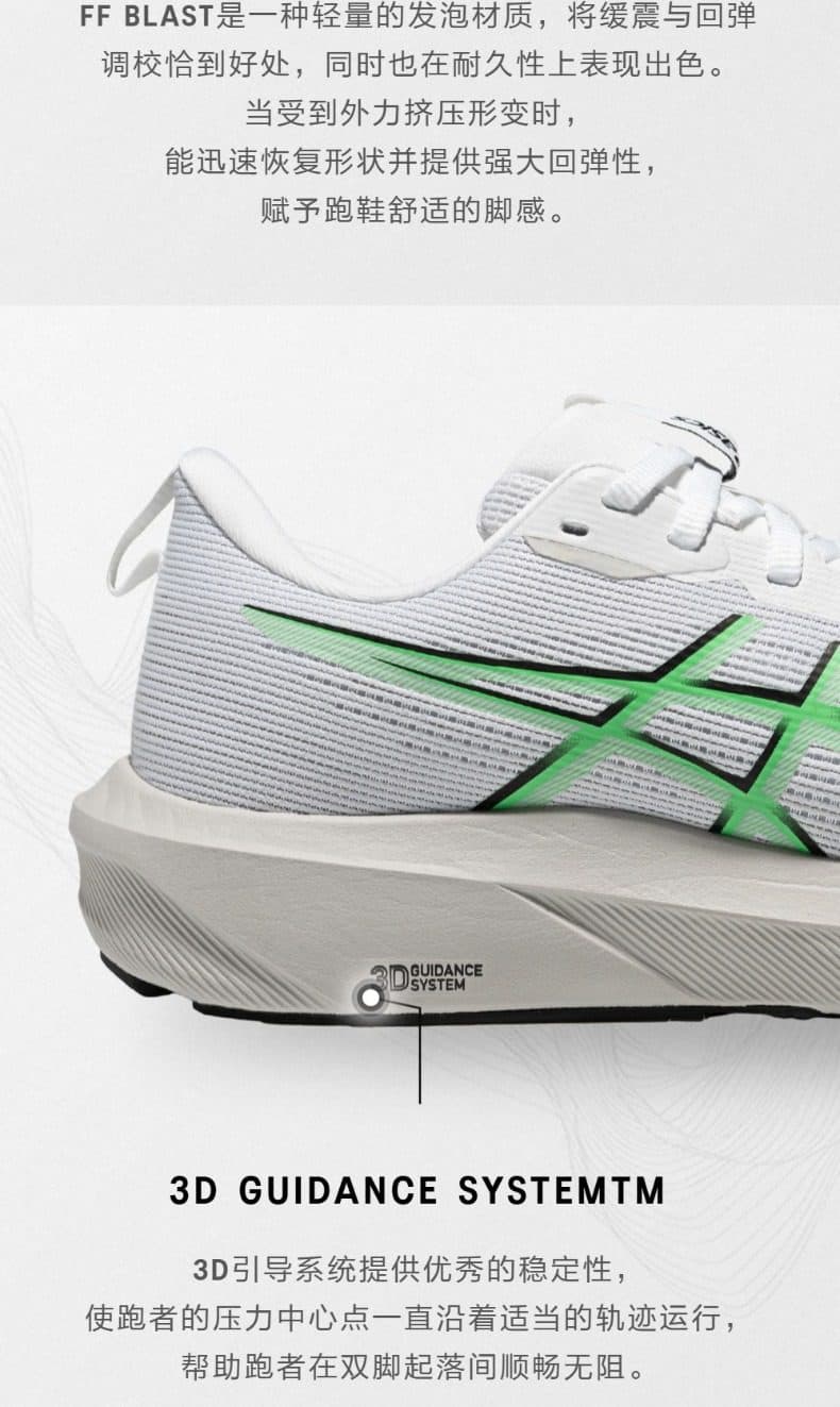 3D引导系统、中底FF BLAST? PLUS缓冲层、PureGEL缓震胶