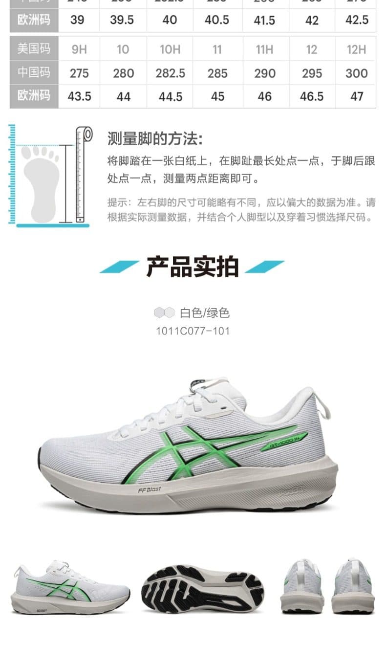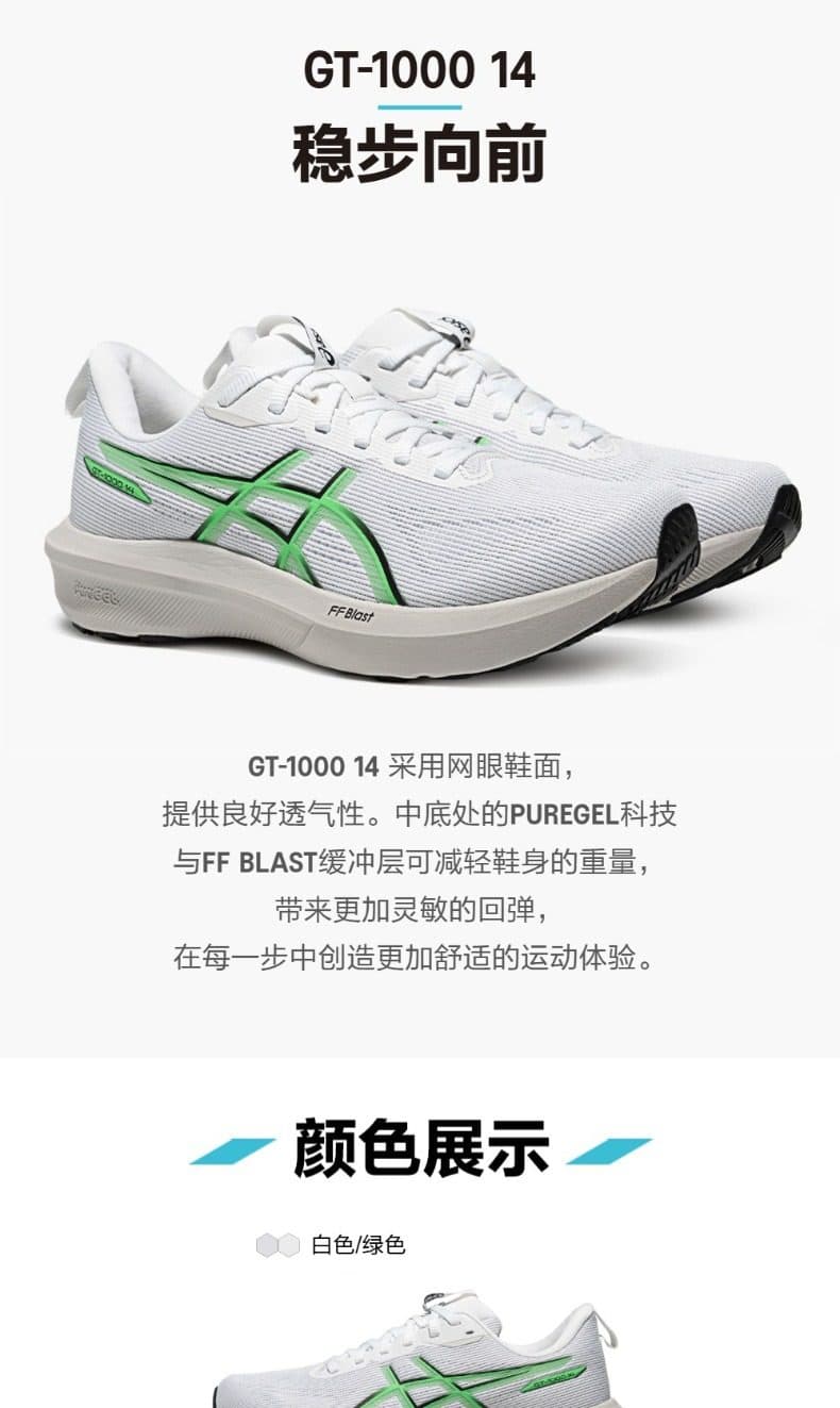 ASICS亚瑟士 男 跑步鞋 GT-1000 14稳定支撑跑步鞋 透气缓震运动鞋 1011C077-101 白色/绿色