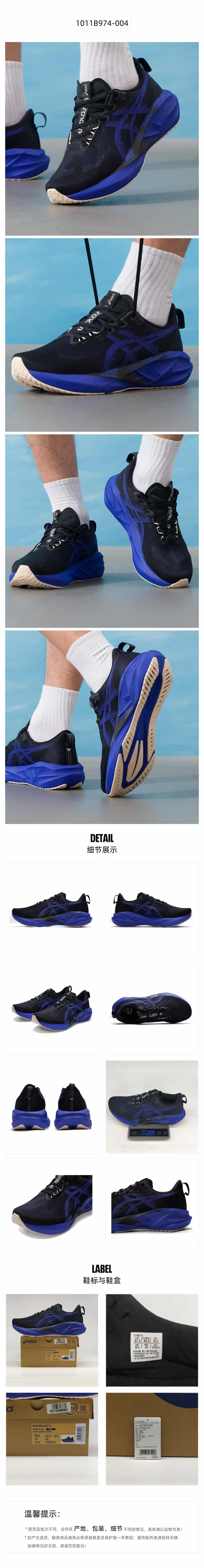 ASICS亚瑟士 男 跑步鞋 NOVABLAST 5轻量回弹缓震跑鞋 网面透气跑鞋 耐磨运动鞋 1011B974-004 黑色/蓝色