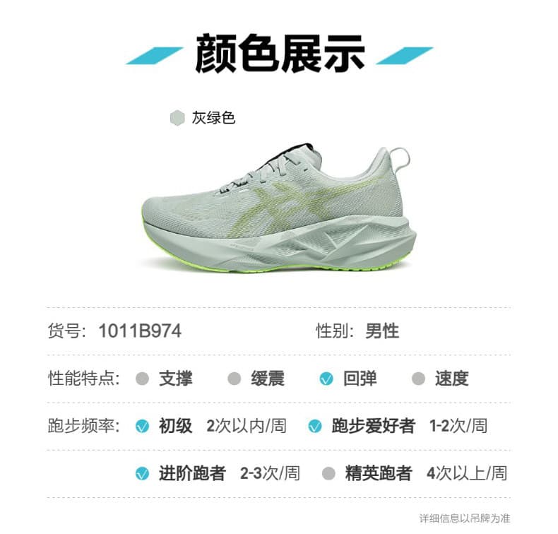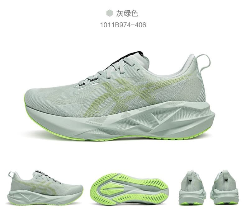 ASICS亚瑟士 男 跑步鞋 NOVABLAST 5 PLATINUM轻量回弹缓震跑鞋 网面透气跑鞋 耐磨运动鞋 1011B974-406 灰绿色