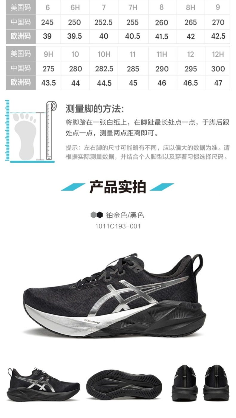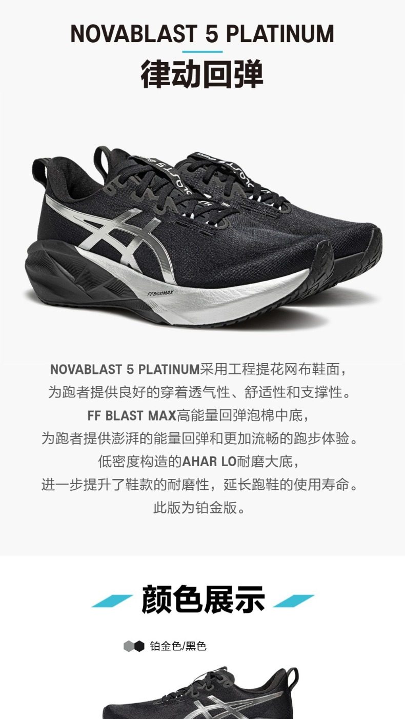 ASICS亚瑟士 男 跑步鞋 NOVABLAST 5轻量回弹缓震跑鞋 网面透气跑鞋 耐磨运动鞋 1011C193-001 铂金色/黑色