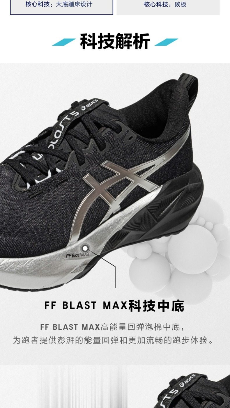 缓震回弹:中底搭载 FF BLAST MAX 泡沫,相较上一代弹跳性能提升8.5%,提供柔软着陆感与充沛能量反馈,8毫米跟差助力自然跑姿。