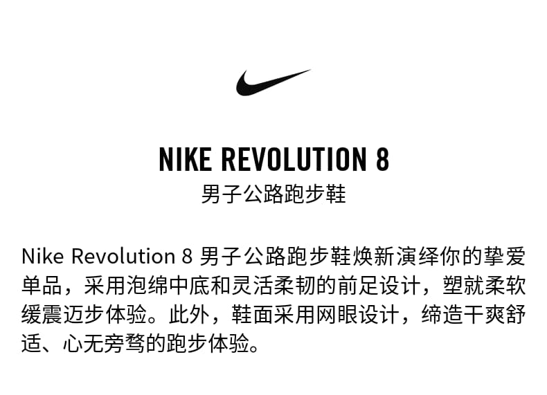 NIKE耐克 男 跑步鞋 REVOLUTION 8公路缓震跑鞋 网面透气跑步鞋 HJ9198-002 黑/煤黑