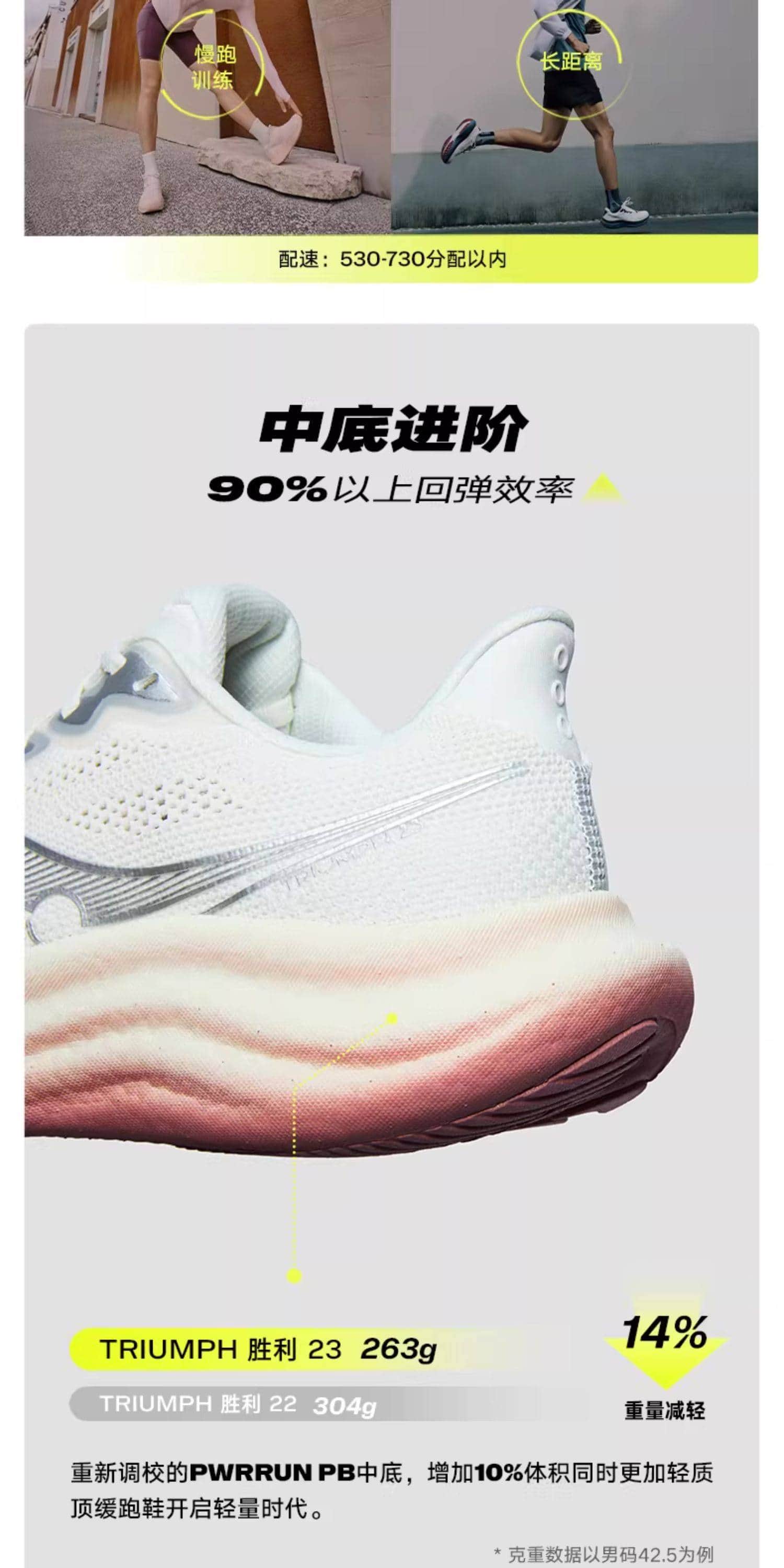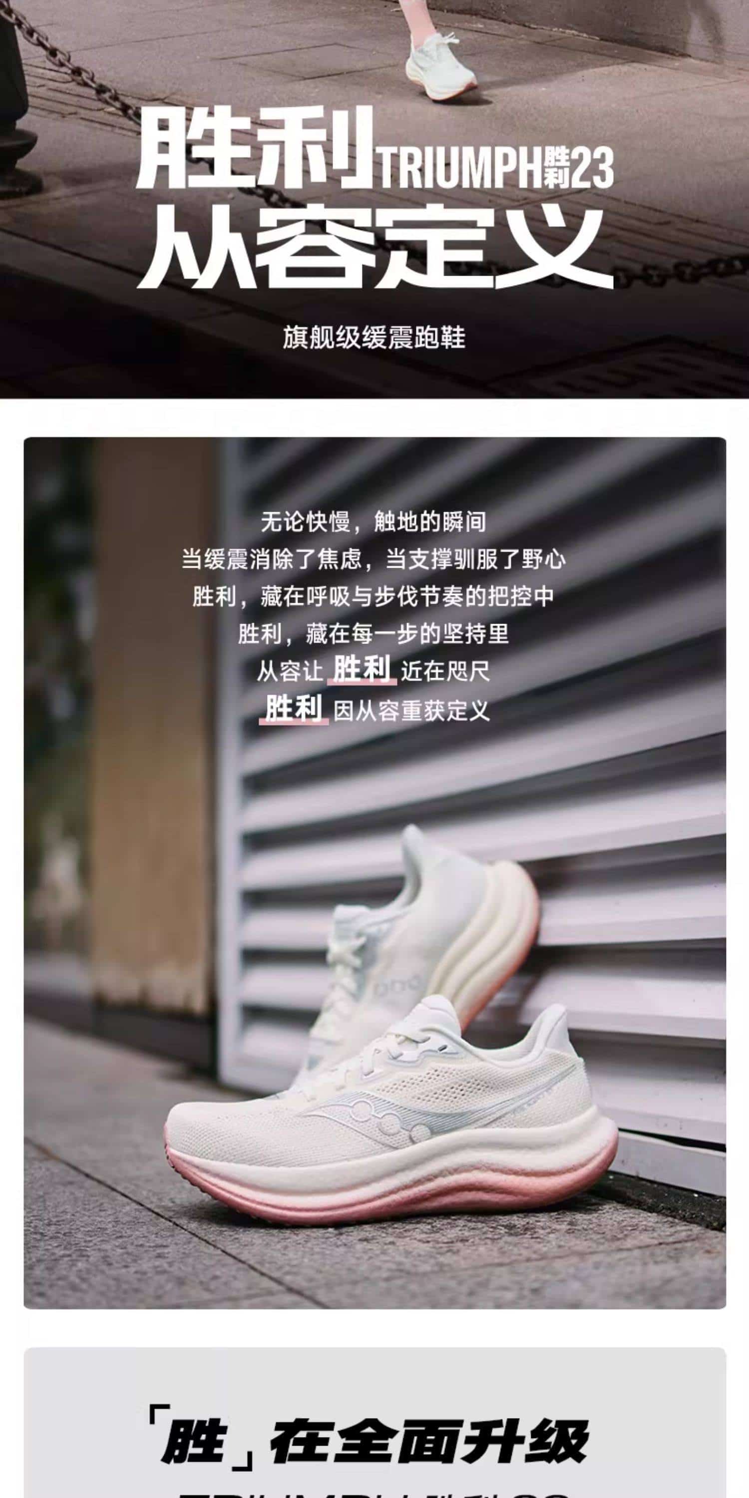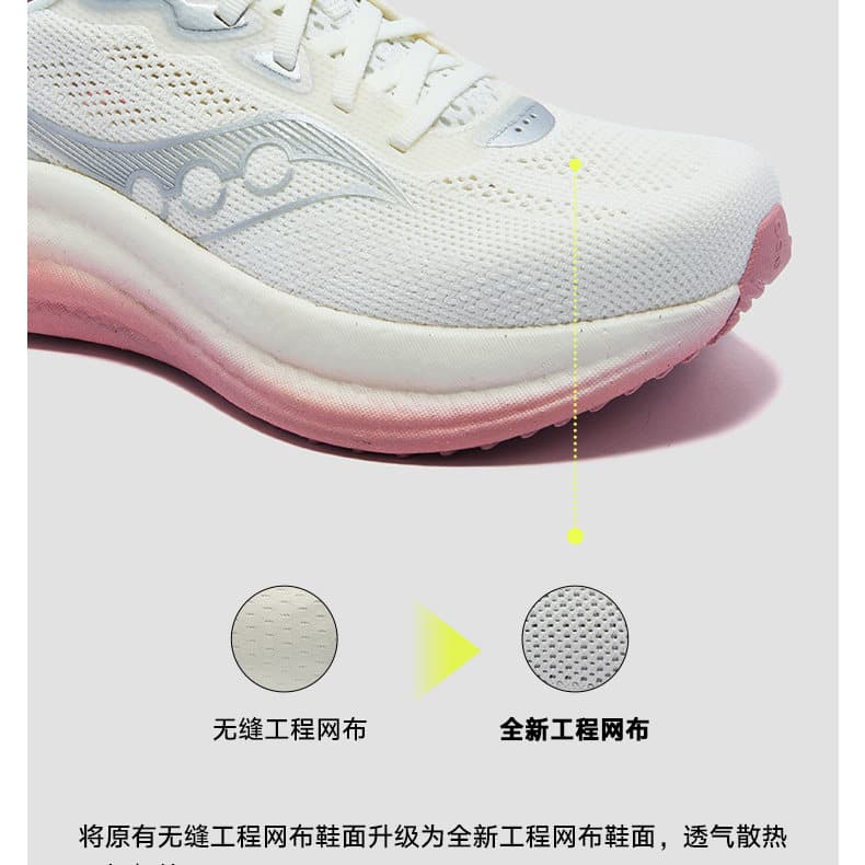 Saucony索康尼 彭于晏同款 胜利23跑步鞋 TRIUMPH 23专业女款缓震慢跑运动鞋 S11023-642 白色