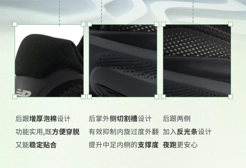 ?大底设计?:分区橡胶外底增强抓地力,耐磨性提升9%,适应多种路面