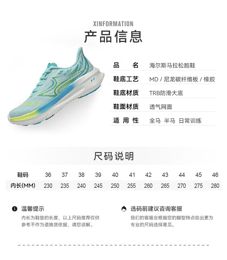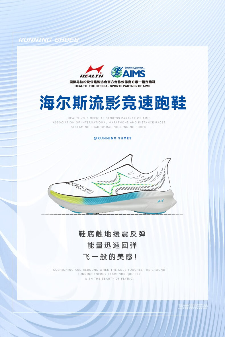 HEALTH 海尔斯 竞速跑鞋 马拉松跑鞋 男女夏季新款透气减震运动鞋 733 水青色