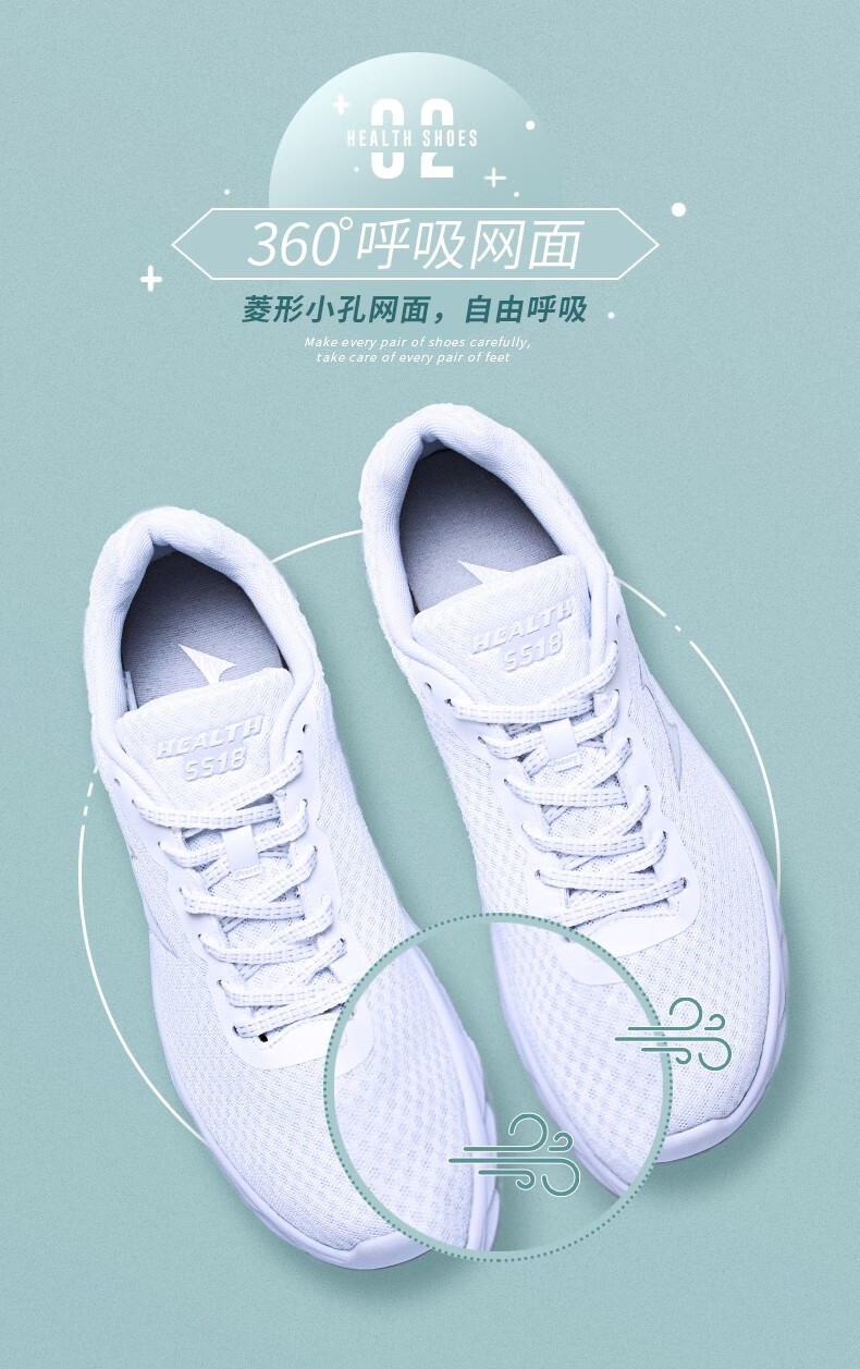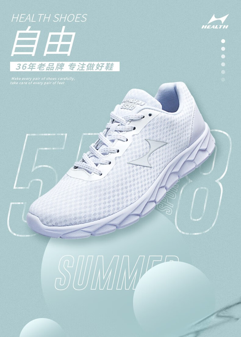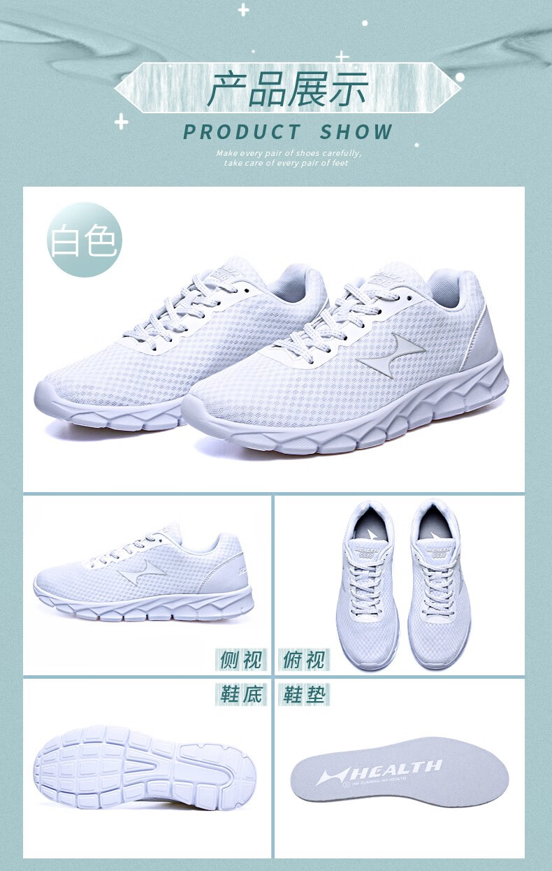 HEALTH 海尔斯 男款跑步鞋 运动男鞋 新款网面透气轻便减震休闲运动鞋男 5518 白色