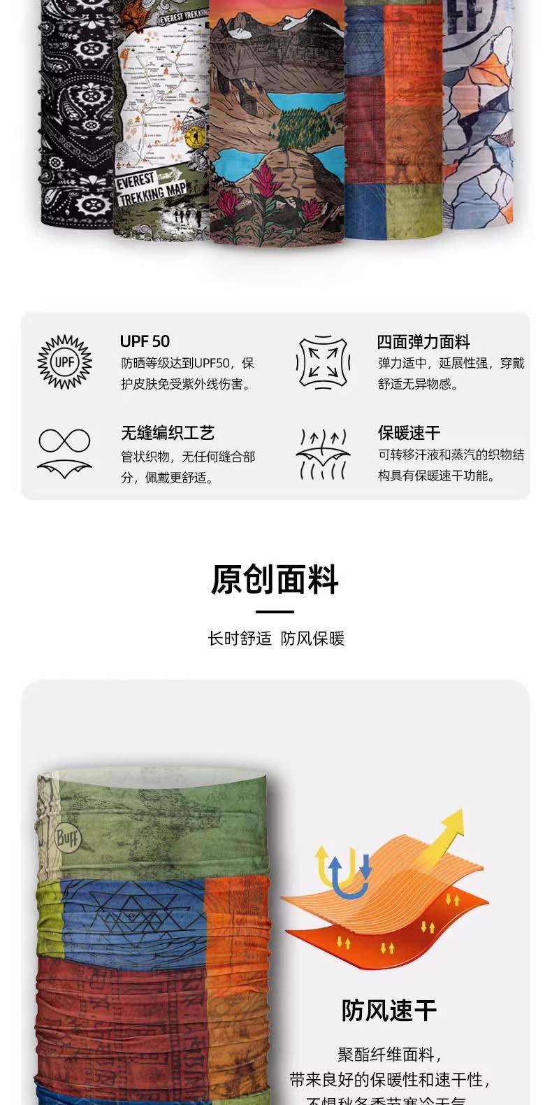 来自西班牙专业户外品牌的 BUFF 原创系列头巾