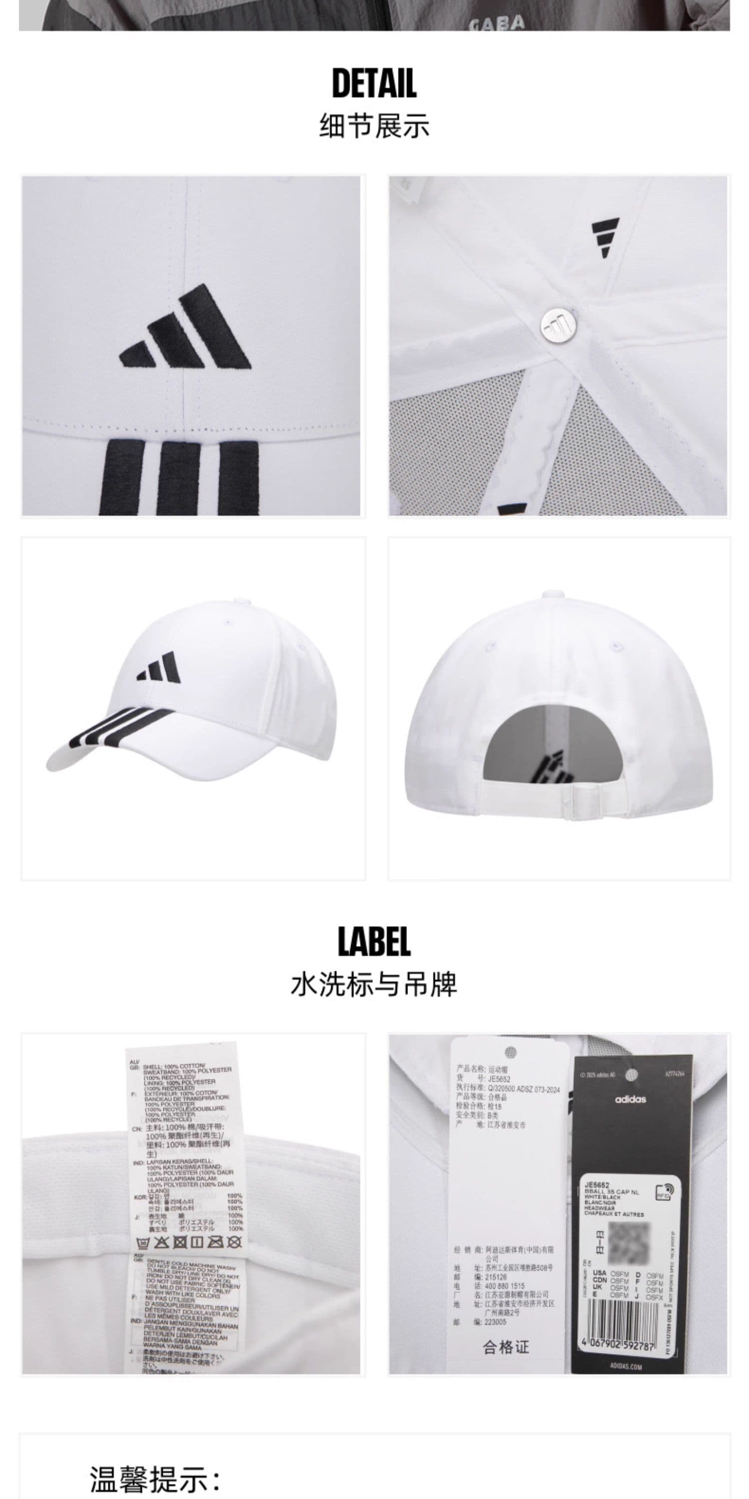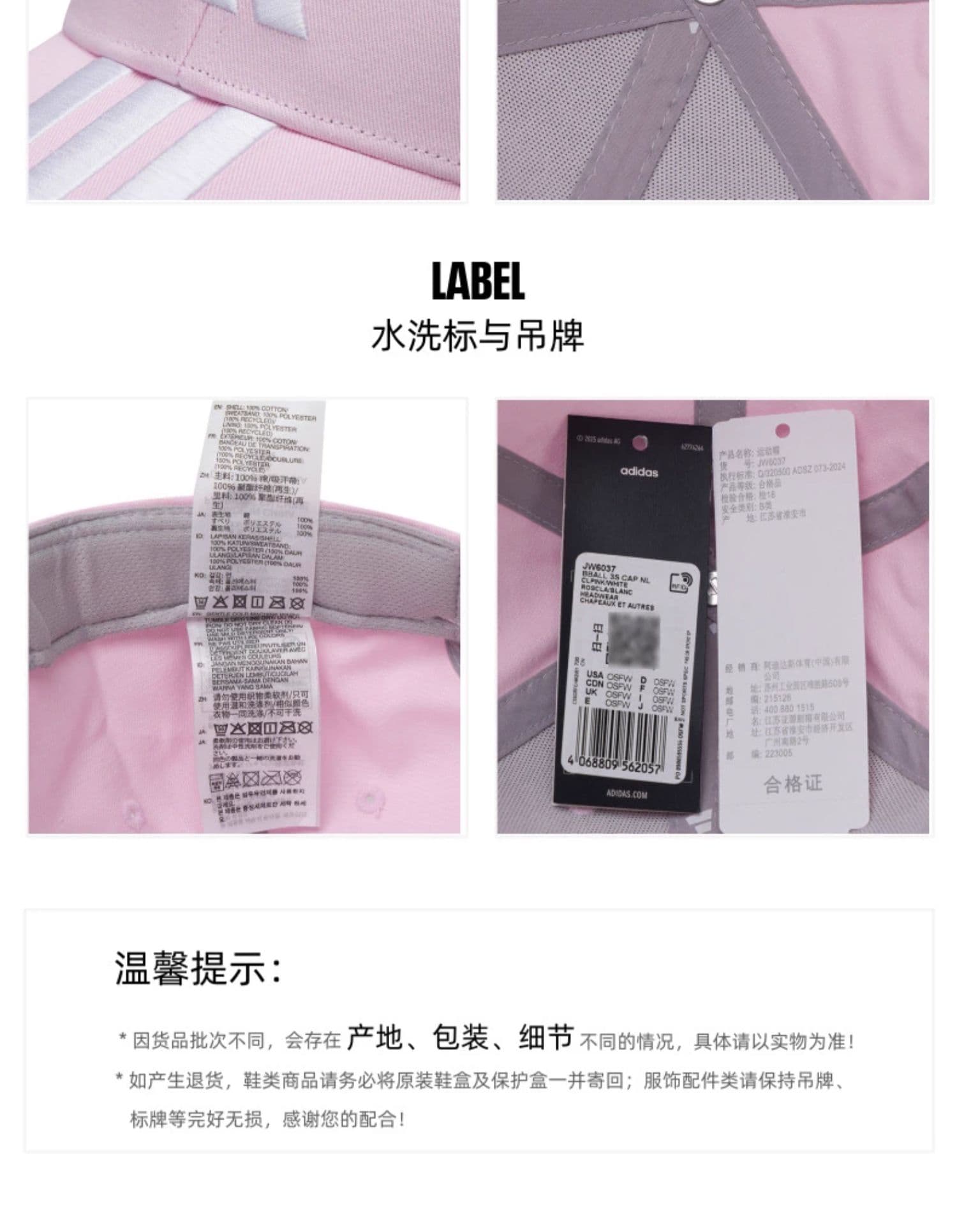 Adidas阿迪达斯 棒球帽女子运动休闲帽鸭舌帽2025新款遮阳帽官方正品棒球帽 JW6037 粉/白 四季通用 透气 男女通用