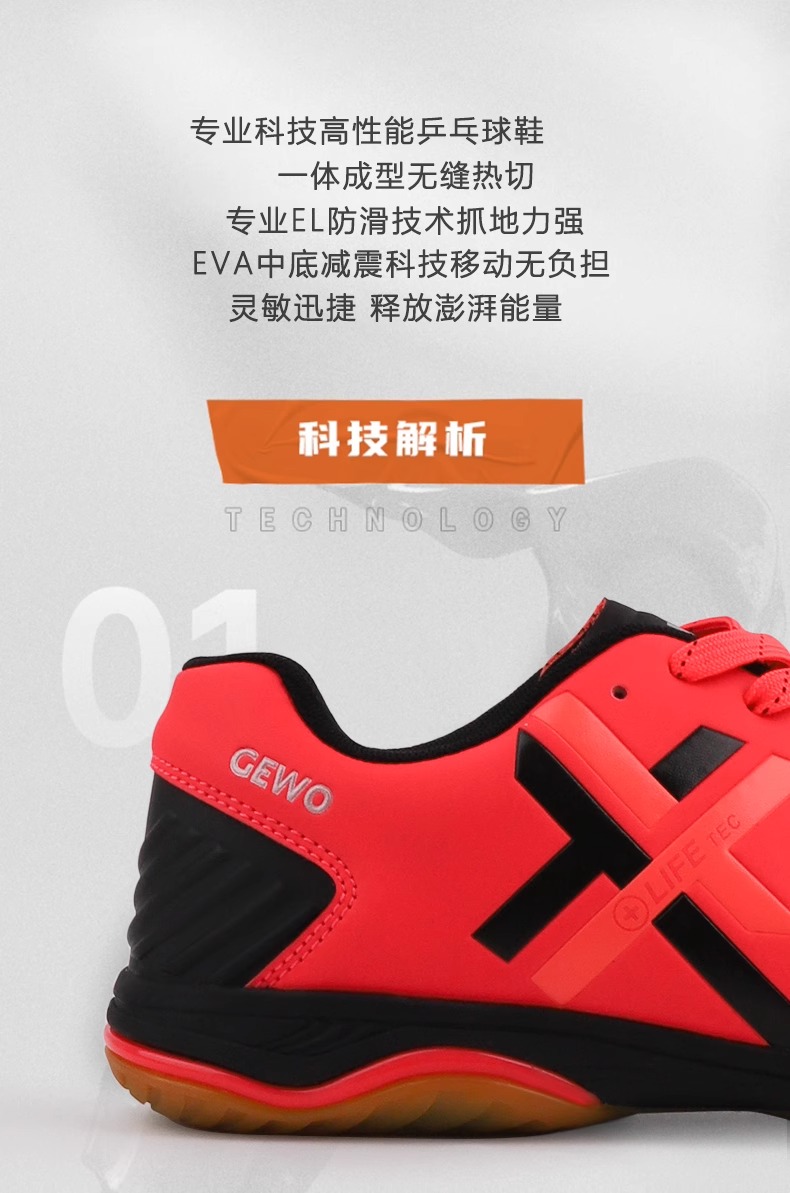 GEWO杰沃 乒乓球鞋 透气防滑运动鞋 乒乓训练球鞋 比赛专业乒乓球鞋 X05 金色