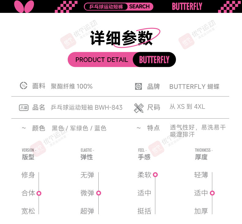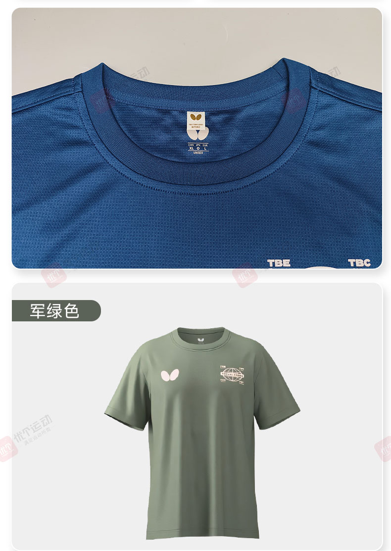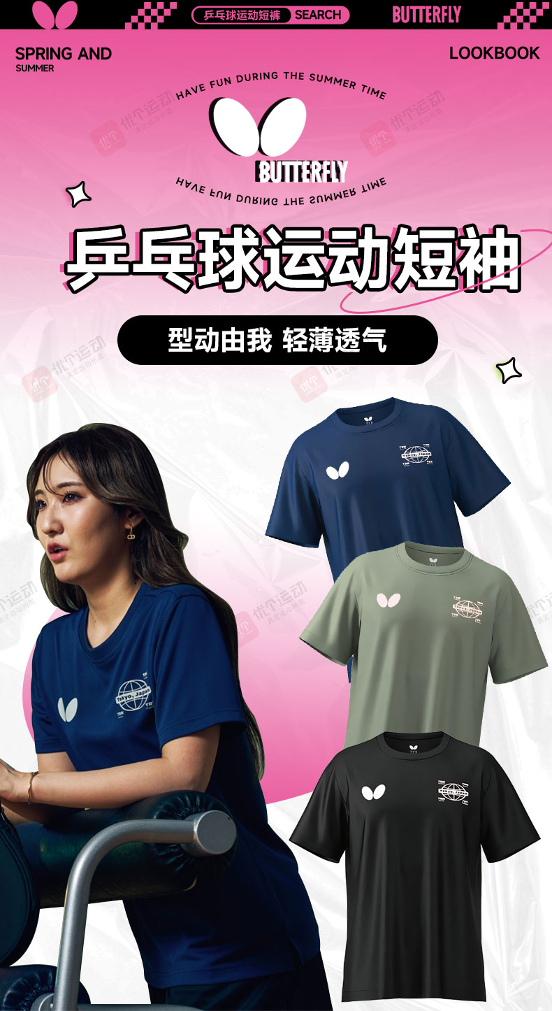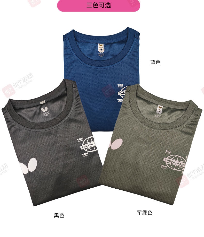 BUTTERFLY蝴蝶 乒乓球服 乒乓球比赛训练运动服 运动短袖上衣 BWH843 三色可选