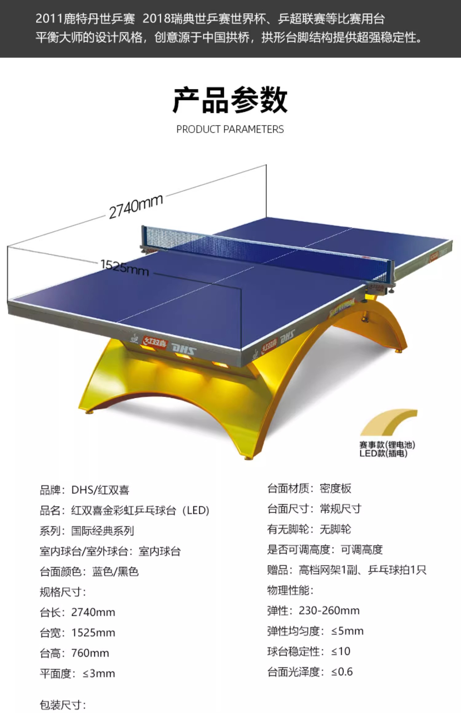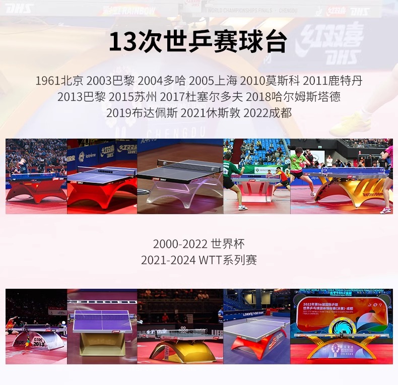 2010、2011、2018、 2021、2022、2023、2024、 2025 年世乒赛等主要大赛用台
