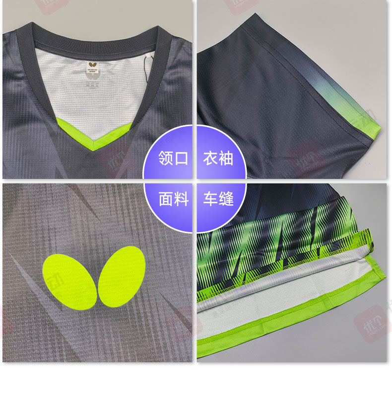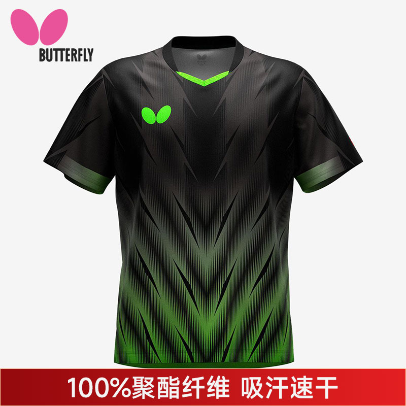 BUTTERFLY蝴蝶 运动T恤 25新款乒乓球运动服 男女款运动短袖上衣 BWH-846-04 黑绿色