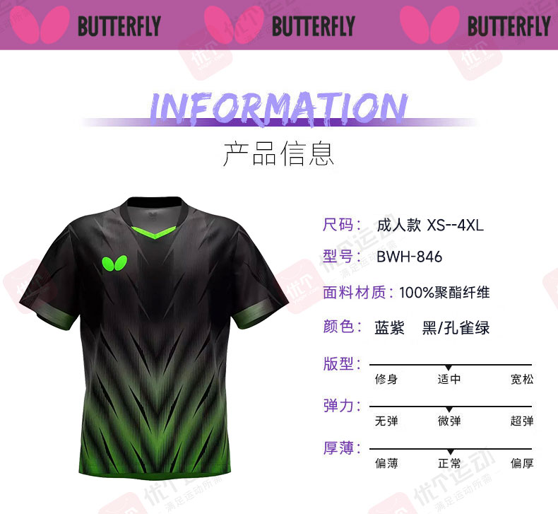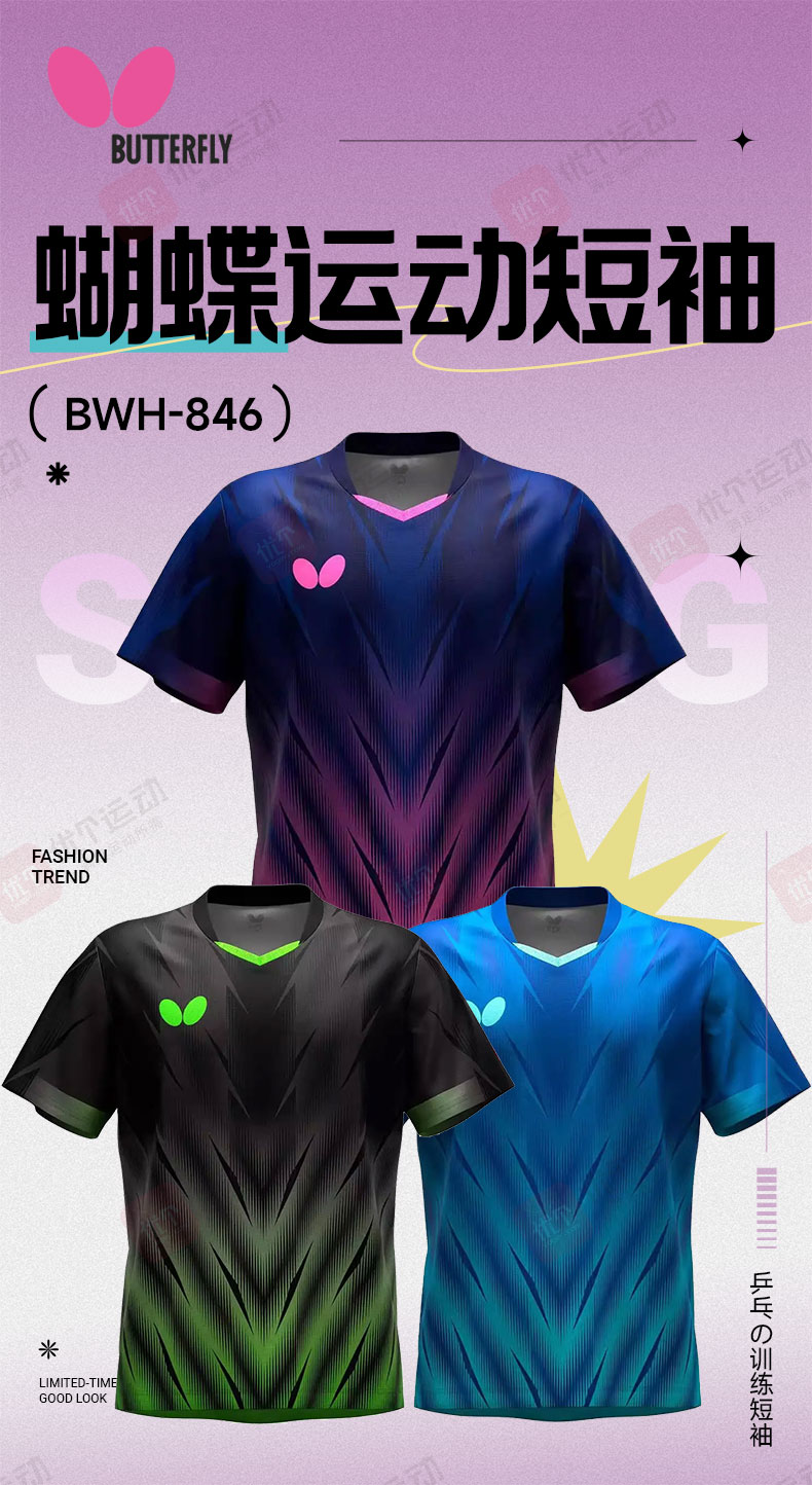 BUTTERFLY蝴蝶 运动T恤 25新款乒乓球运动服 男女款运动短袖上衣 BWH-846-18 深紫色