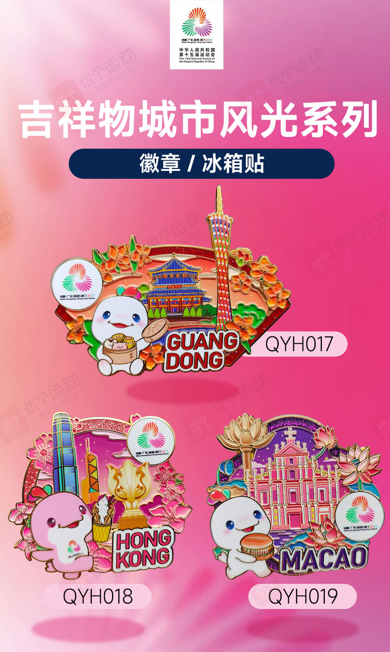 这套十五运吉祥物城市风光系列徽章 / 冰箱贴必须拿下!