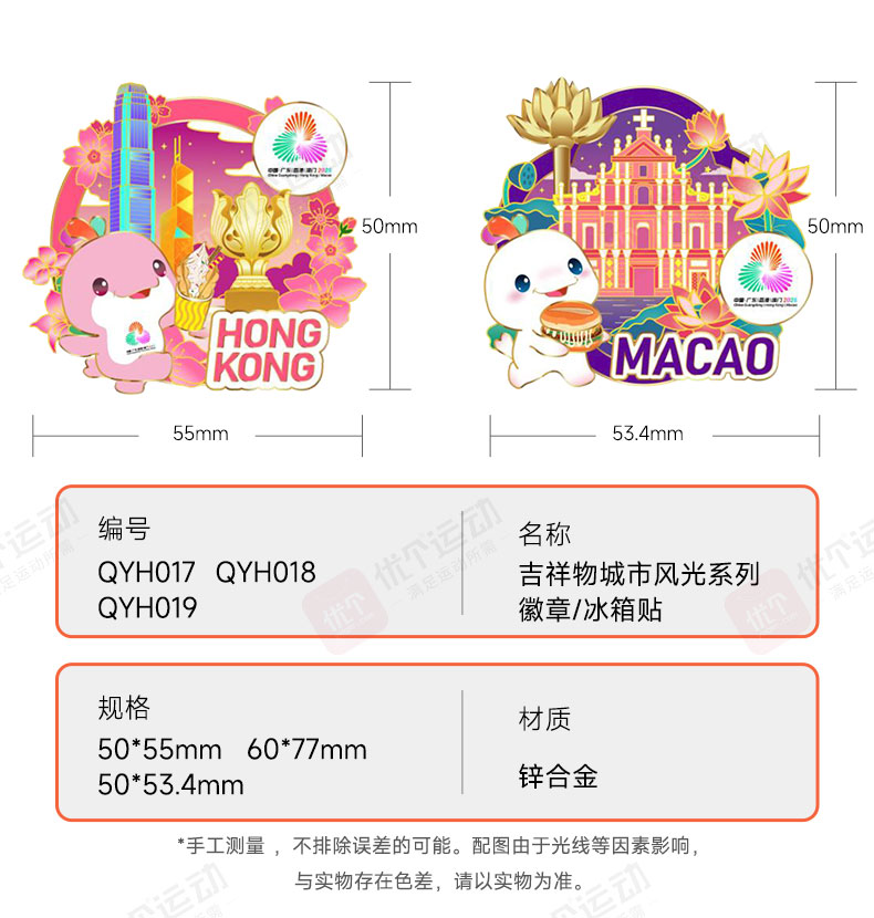 DOUBLE FISH双鱼 吉祥物城市风光系列徽章/冰箱贴 十五运徽章 创意冰箱贴 广东/香港/澳门