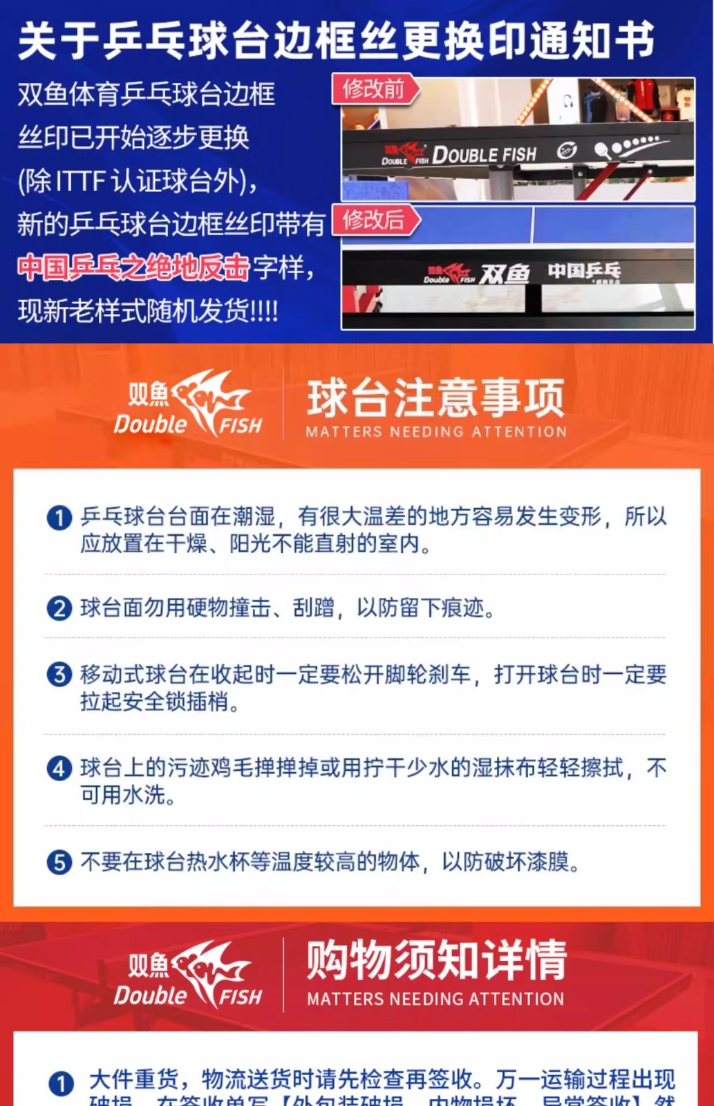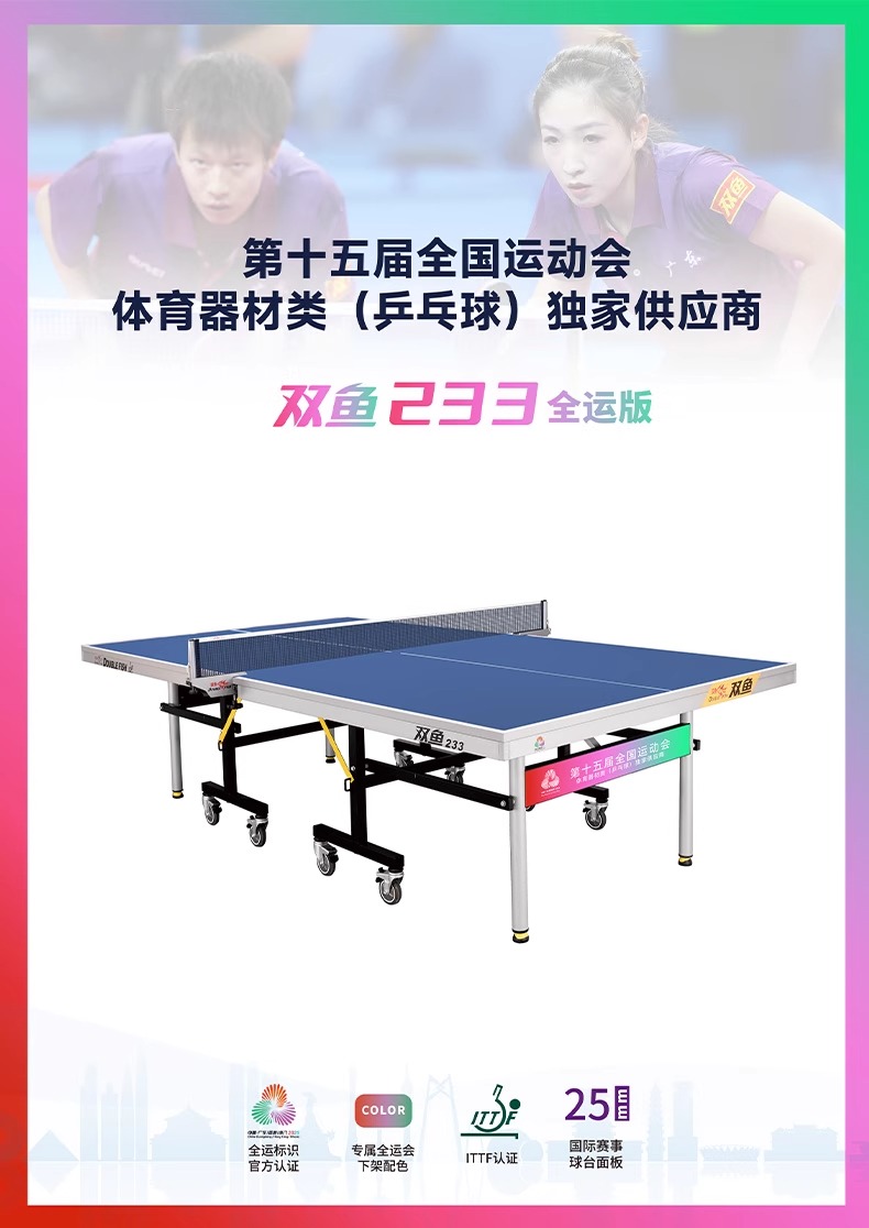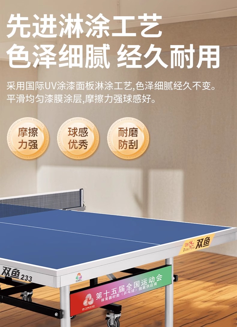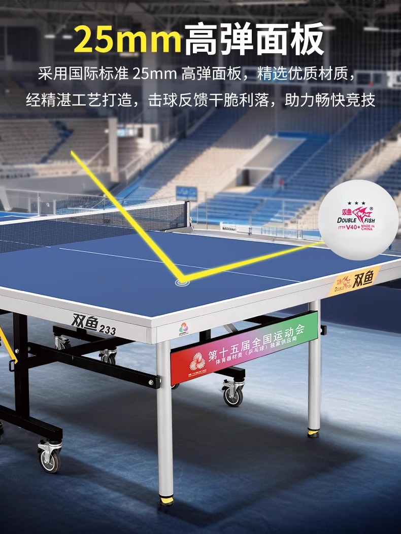 DOUBLE FISH双鱼 233乒乓球台全运版 第十五届全国运动会标准室内大赛乒乓球桌 蓝色面板