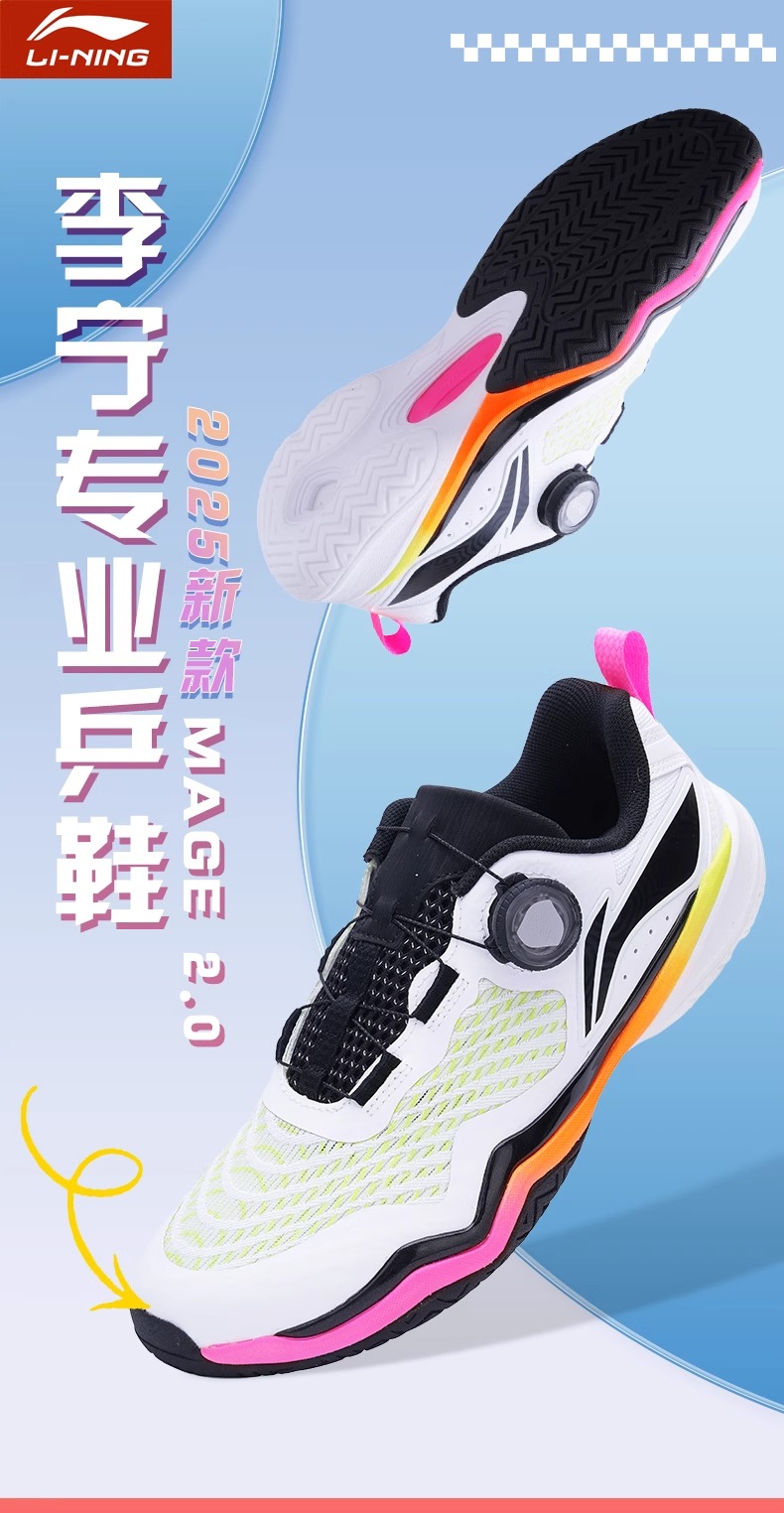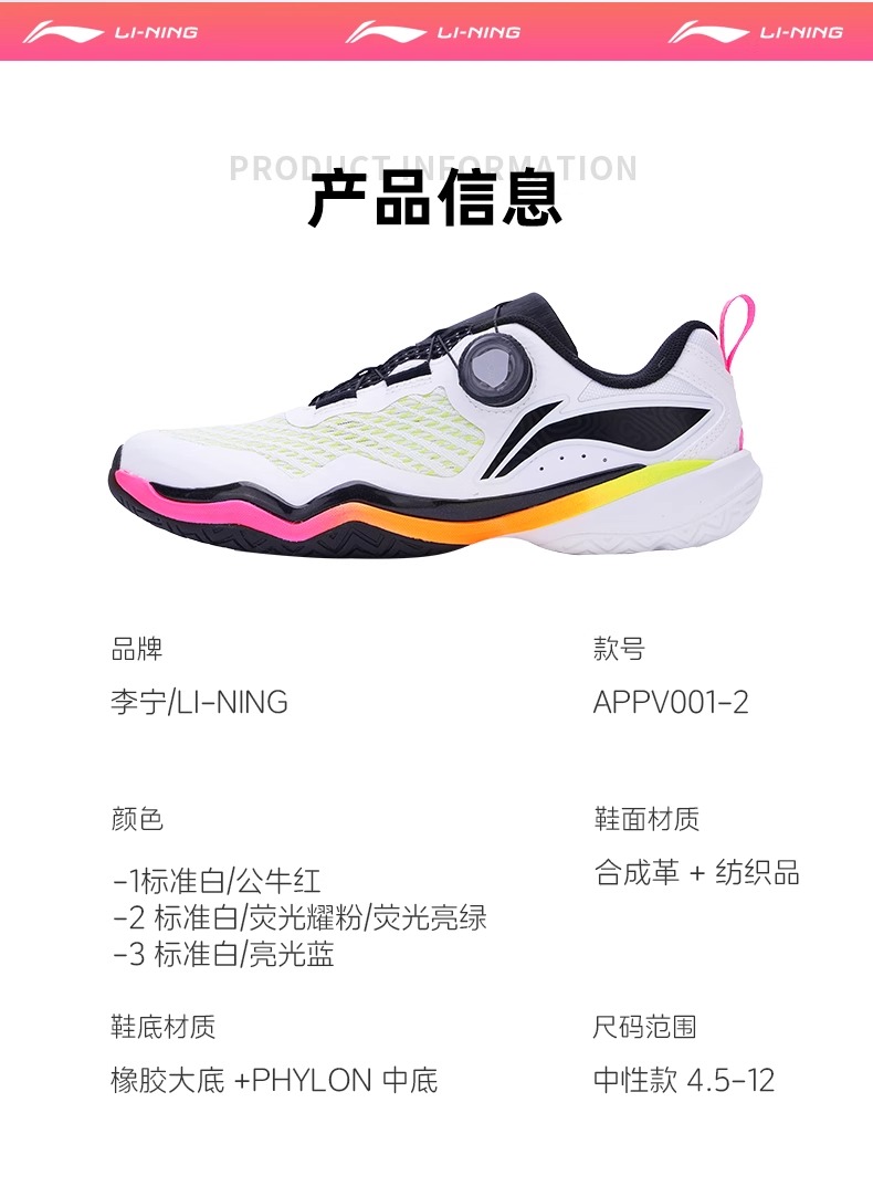 LINING李宁 乒乓球鞋 国家队同款MAGE 2.0 男女同款 BOA旋钮专业比赛运动鞋 APPV001-2 标准白/荧光耀粉/荧光亮绿